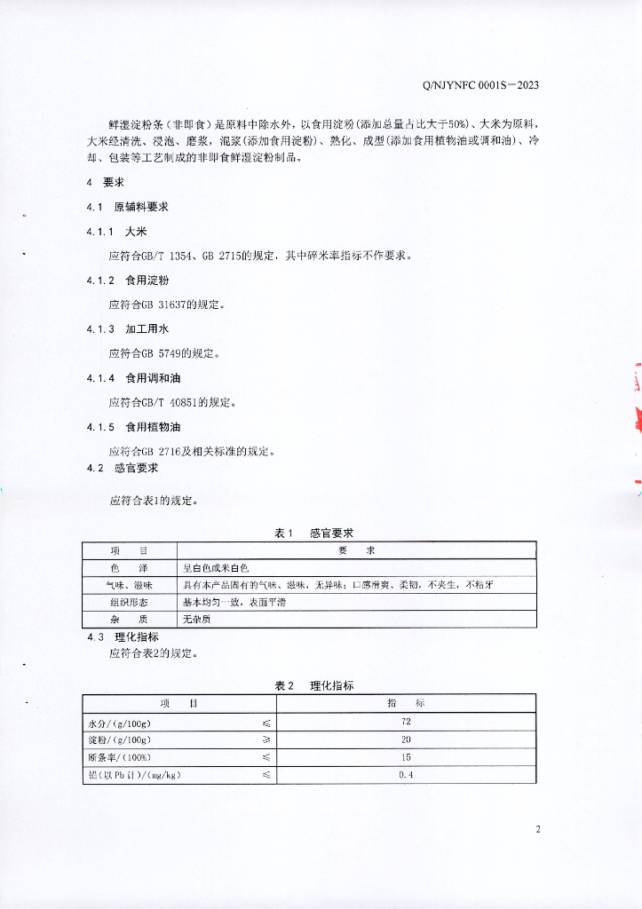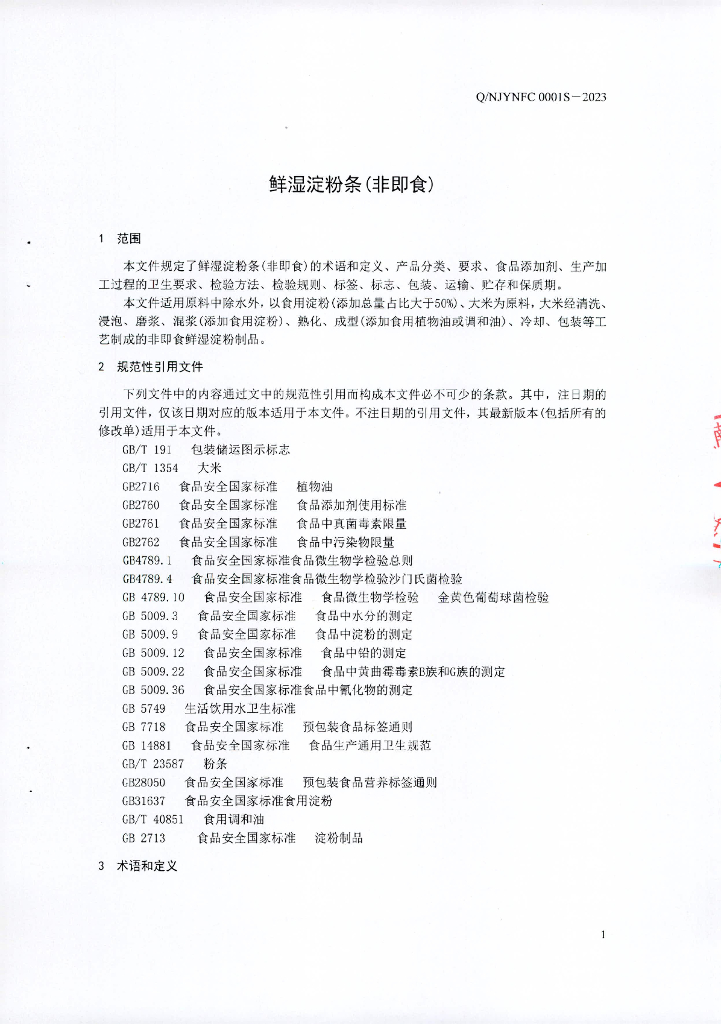 Q/NJYNFC 0001S-2023 鲜湿淀粉条(非即食)