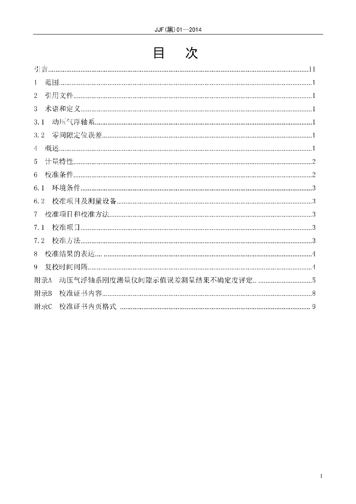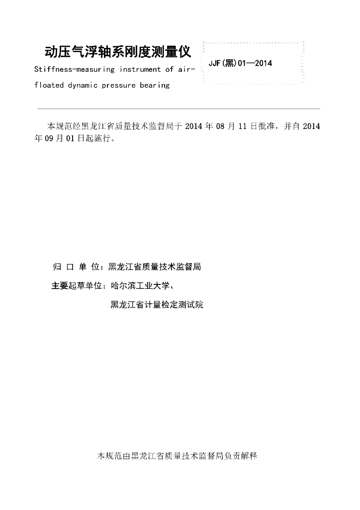 JJF(黑)01-2014 动压气浮轴系刚度测量仪校准规范
