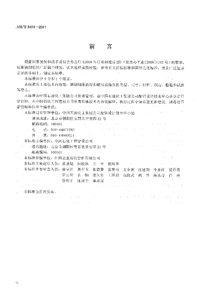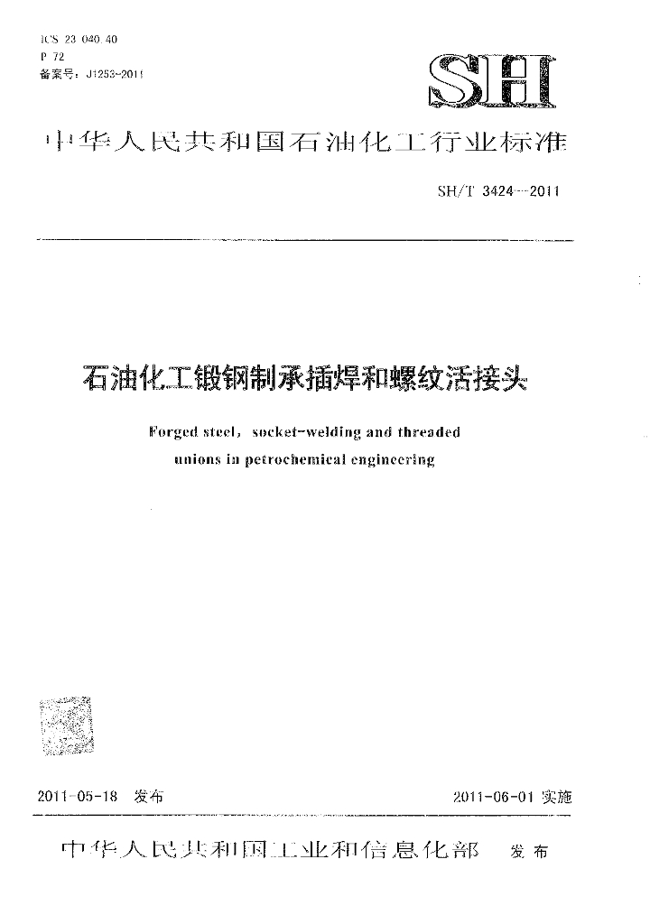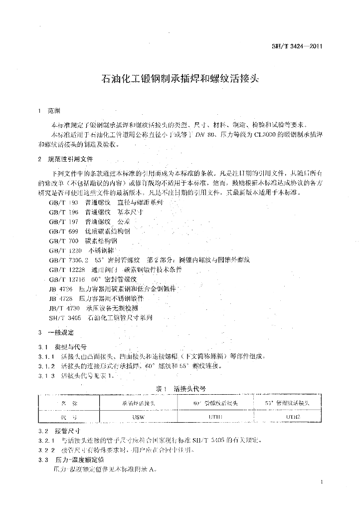 SH/T 3424-2011 石油化工锻钢制承插焊和螺纹活接头