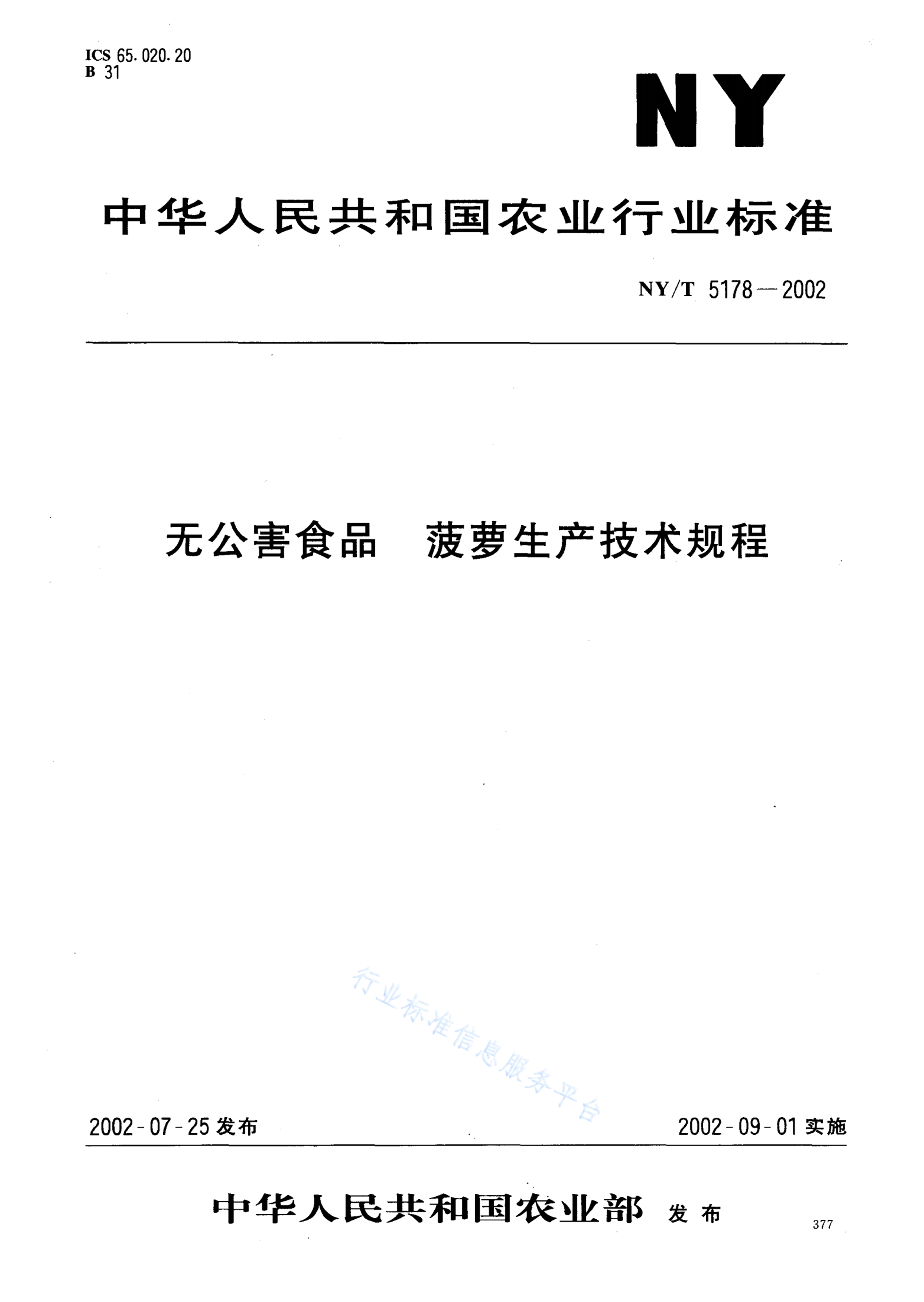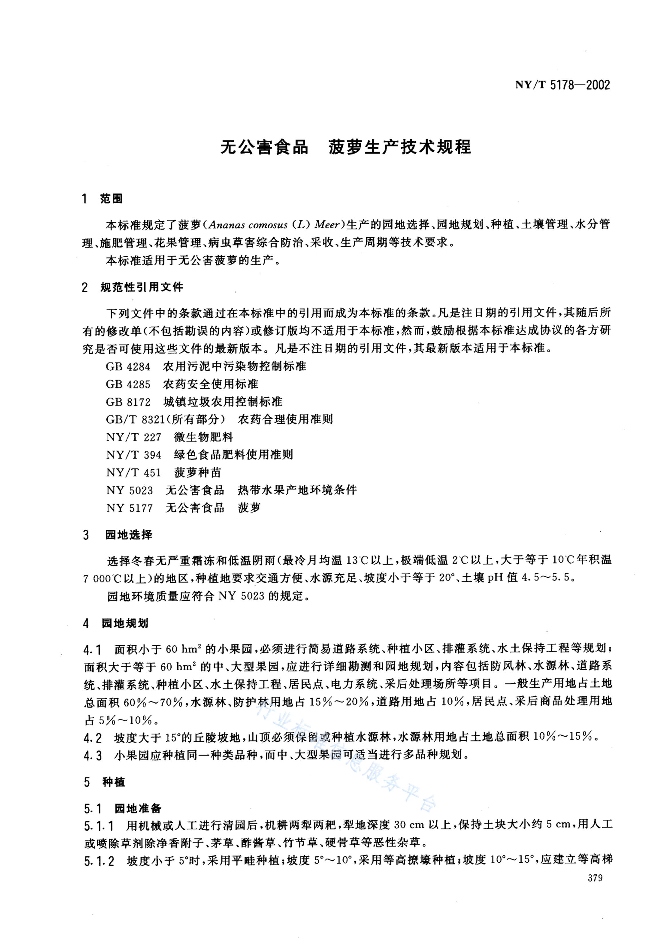 NY/T 5178-2002 无公害食品 菠萝生产技术规程