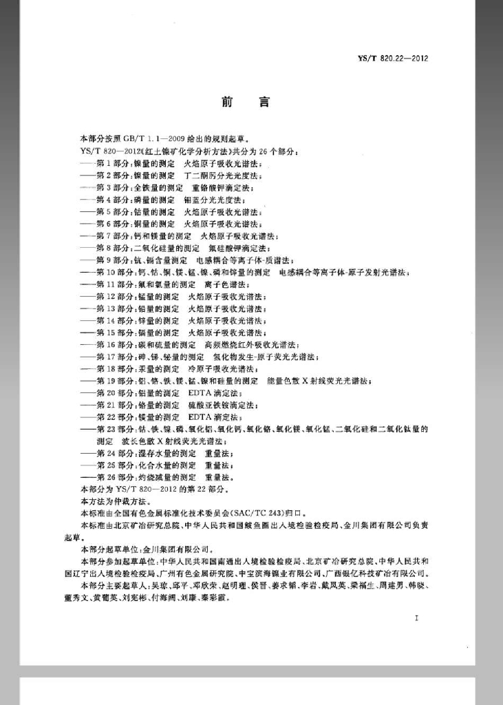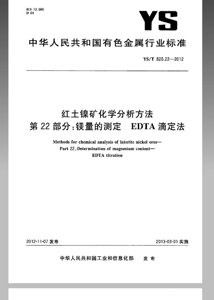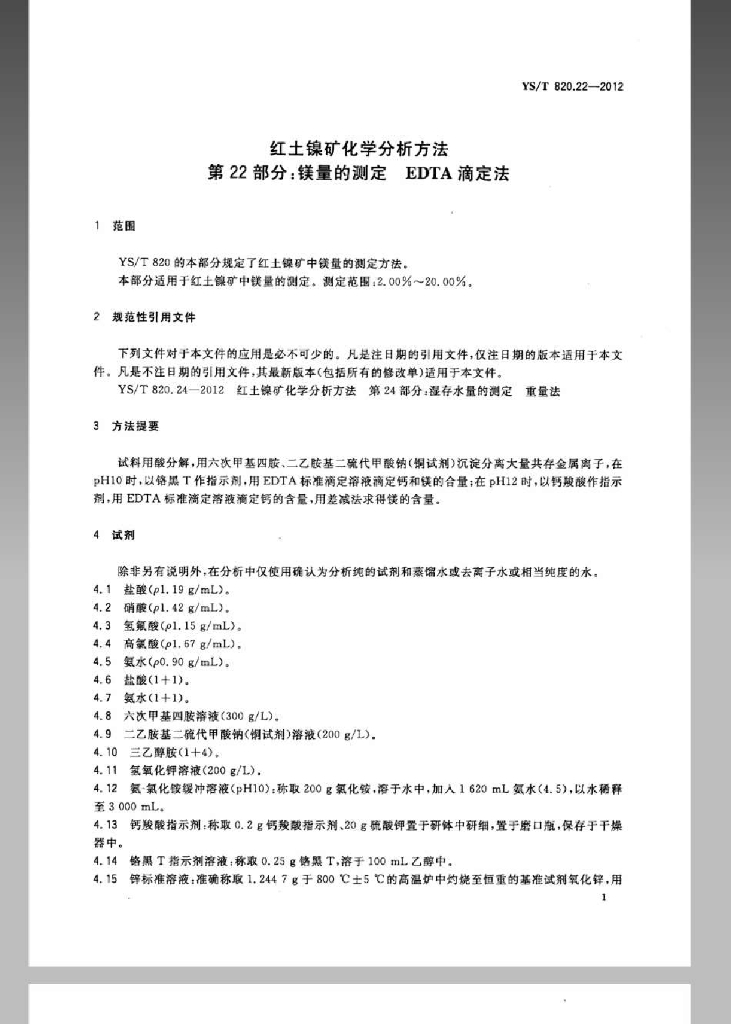 YS/T 820.22-2012 红土镍矿化学分析方法 第22部分:镁量的测定 EDTA滴定法