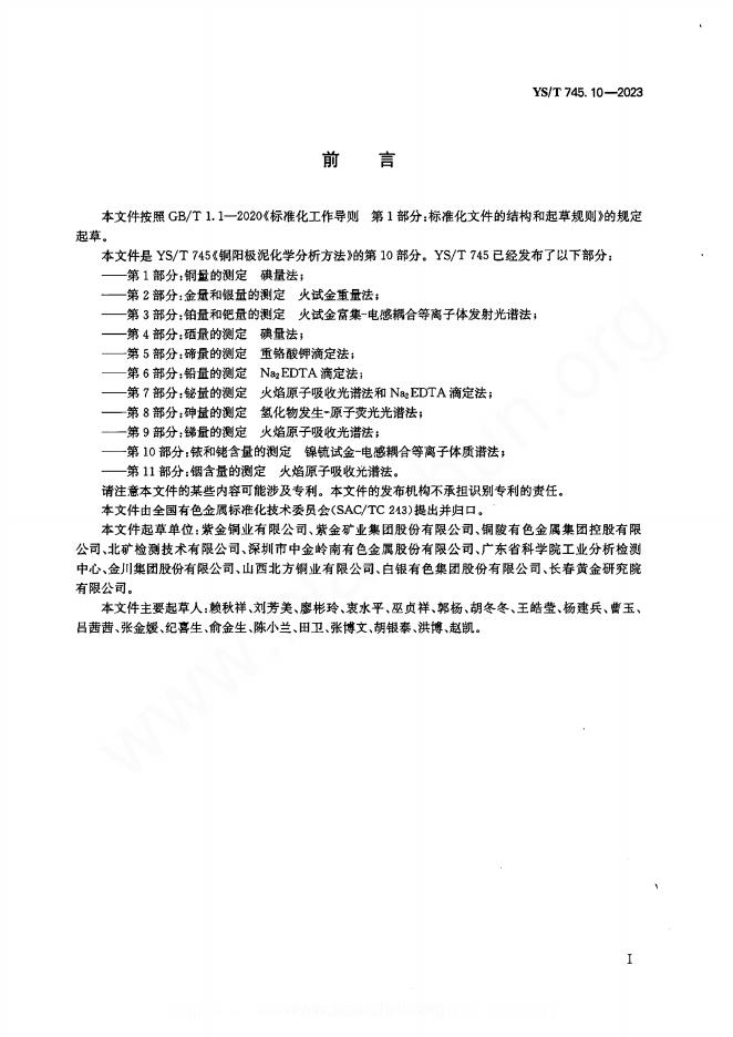 紫金铜业有限公司、紫金矿业集团股份有限公司、铜陵有色金属集团控股有限公司、北矿检测技术有限公司、深圳市中金岭南有色金属股份有限公司、广东省科学院工业分析检测中心、金川集团股份有限公司、山西北方铜业有限公司、白银有色集团股份有限公司、长春黄金研究院有限公司