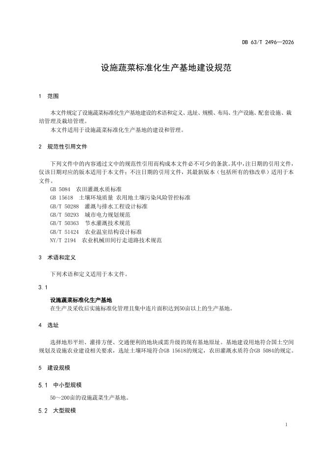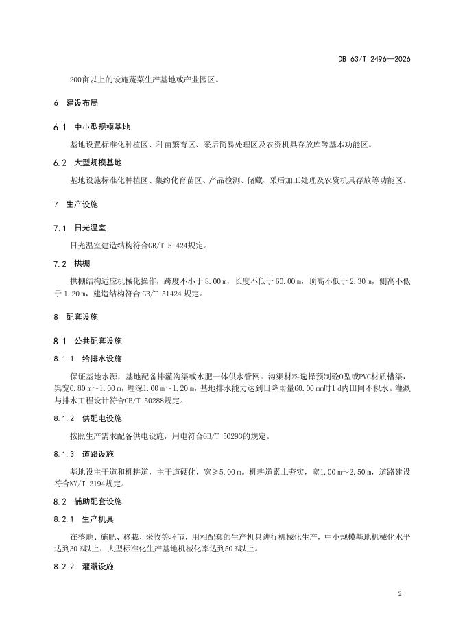 DB63/T 2496-2026 设施蔬菜标准化生产基地建设规范