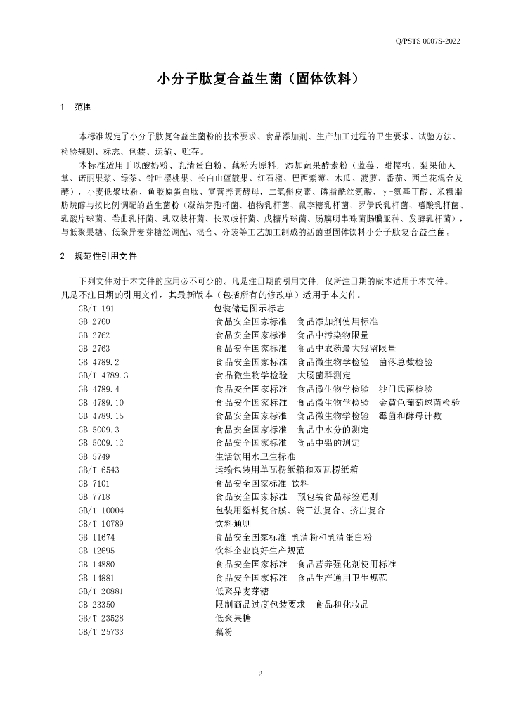Q/PSTS 0007S-2022 小分子肽复合益生菌(固体饮料)