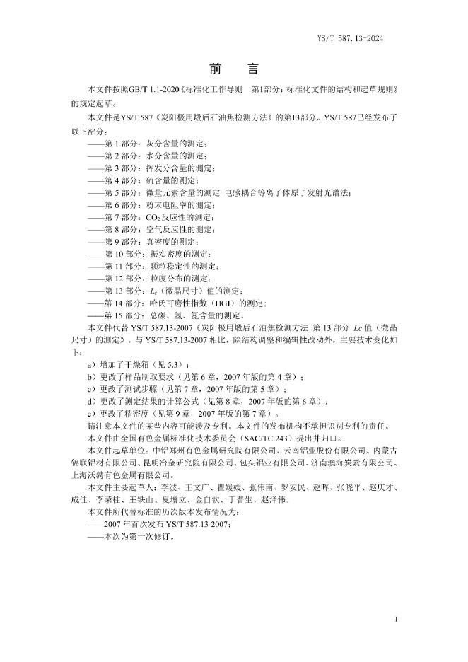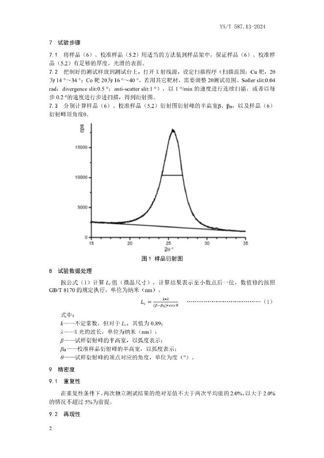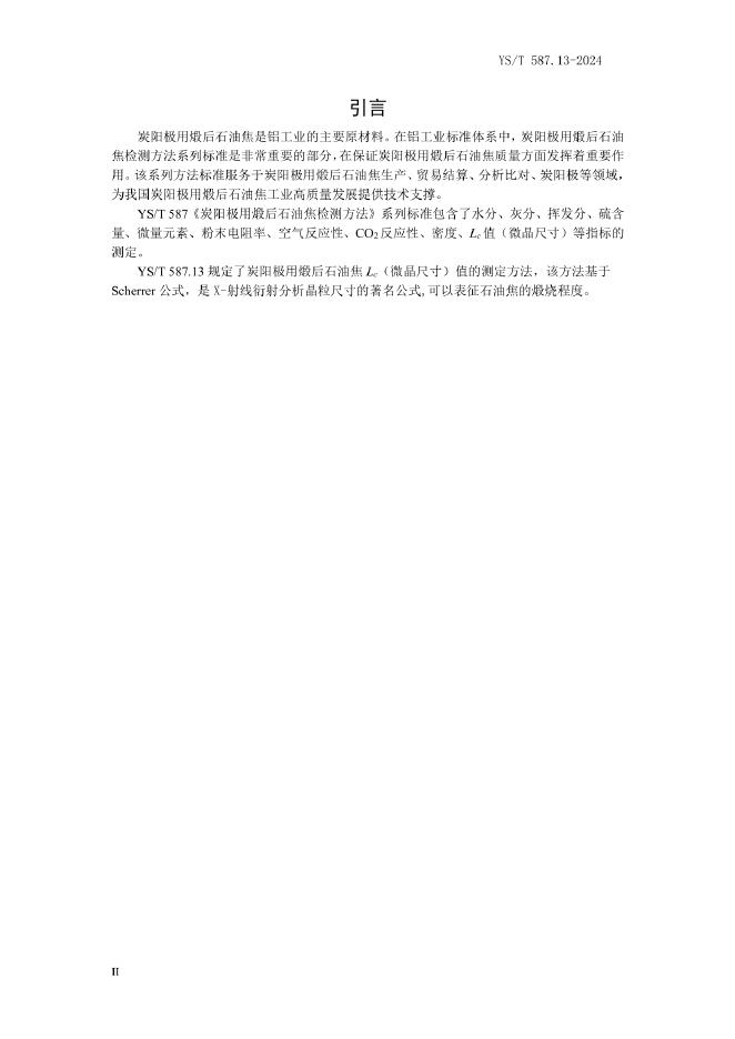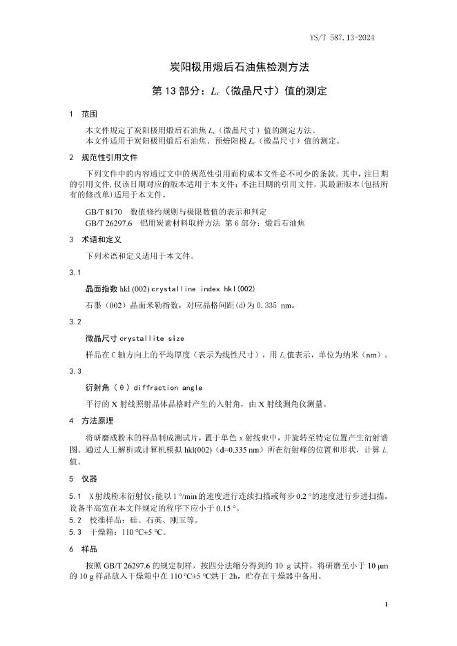 YS/T 587.13-2024 炭阳极用煅后石油焦检测方法 第13部分:Lc(微晶尺寸)值的测定