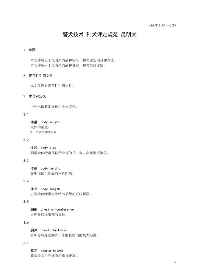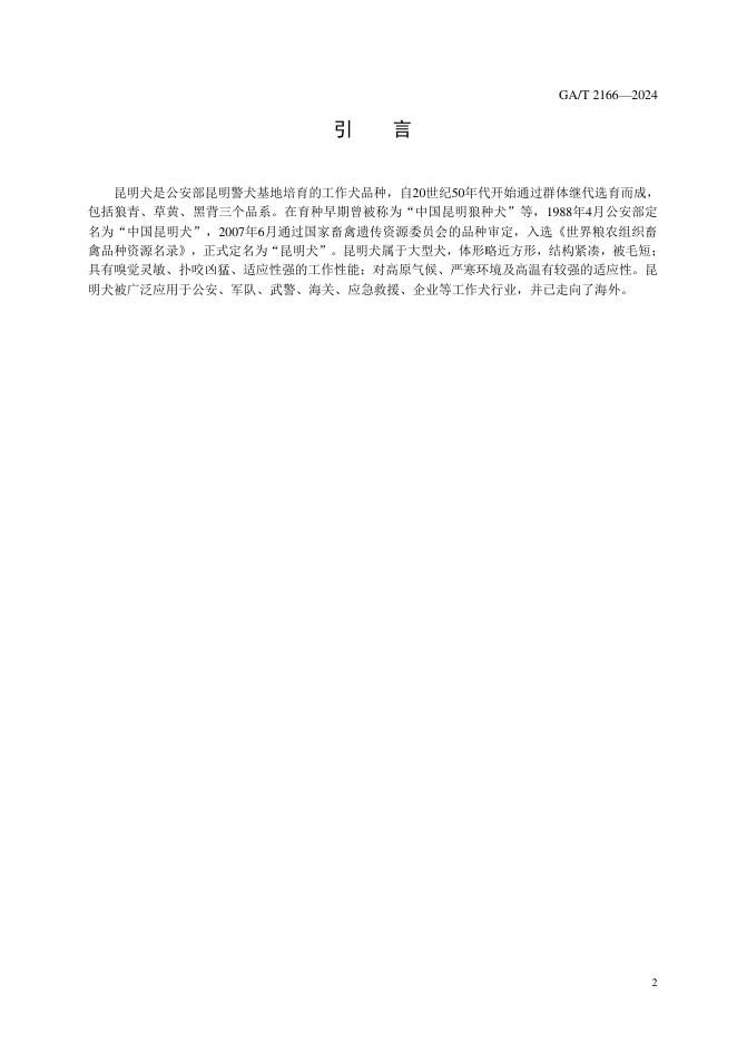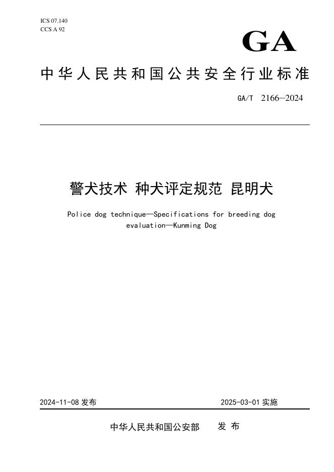 GA/T 2166-2024 警犬技术 种犬评定规范 昆明犬