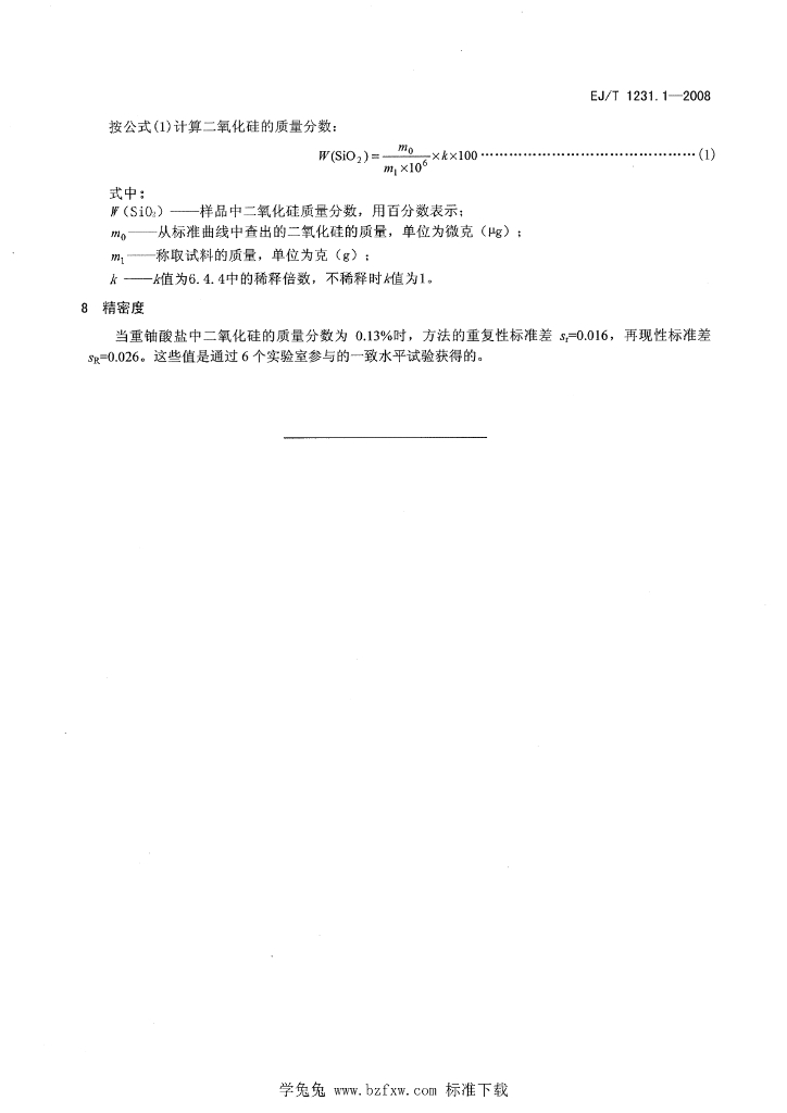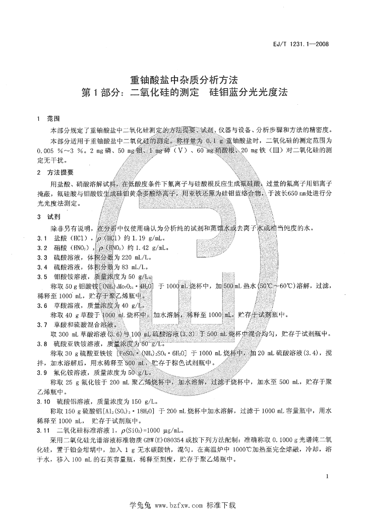EJ/T 1231.1-2008 重铀酸盐中杂质分析方法 第1部分:二氧化硅的测定硅钼蓝分光光度法