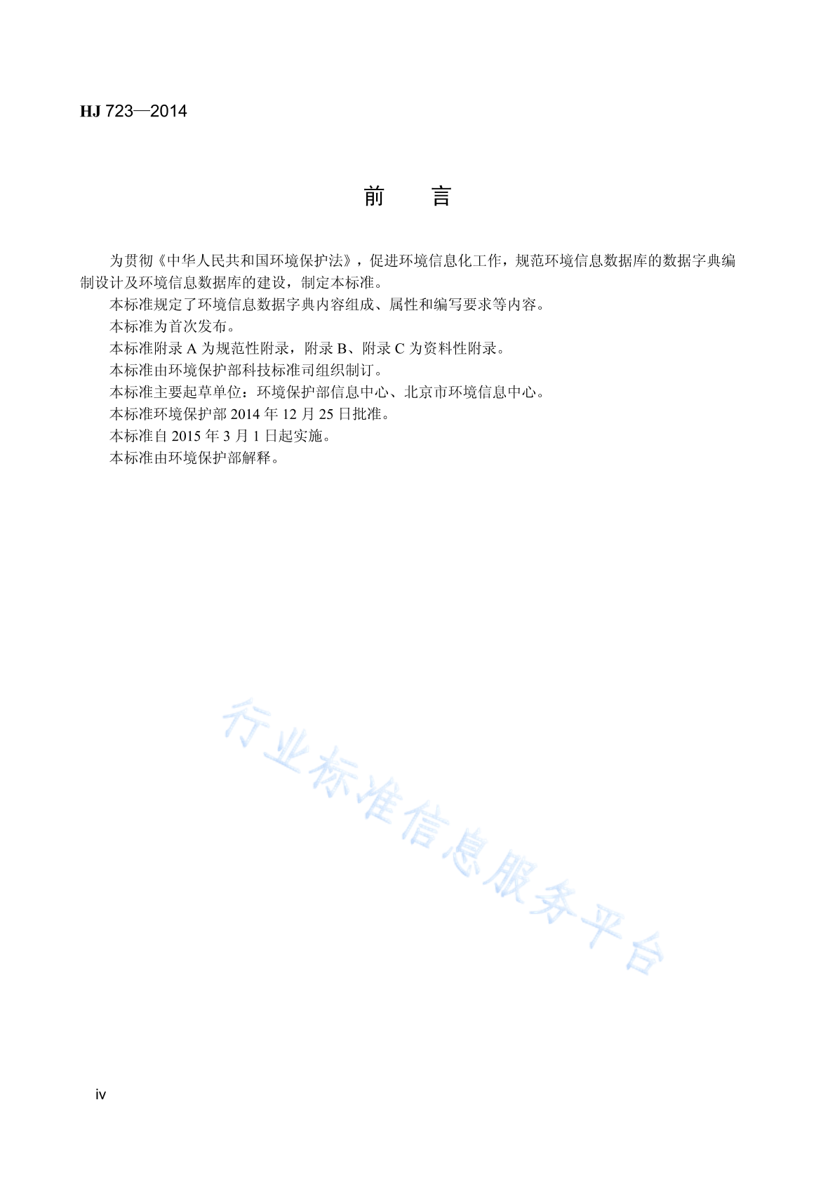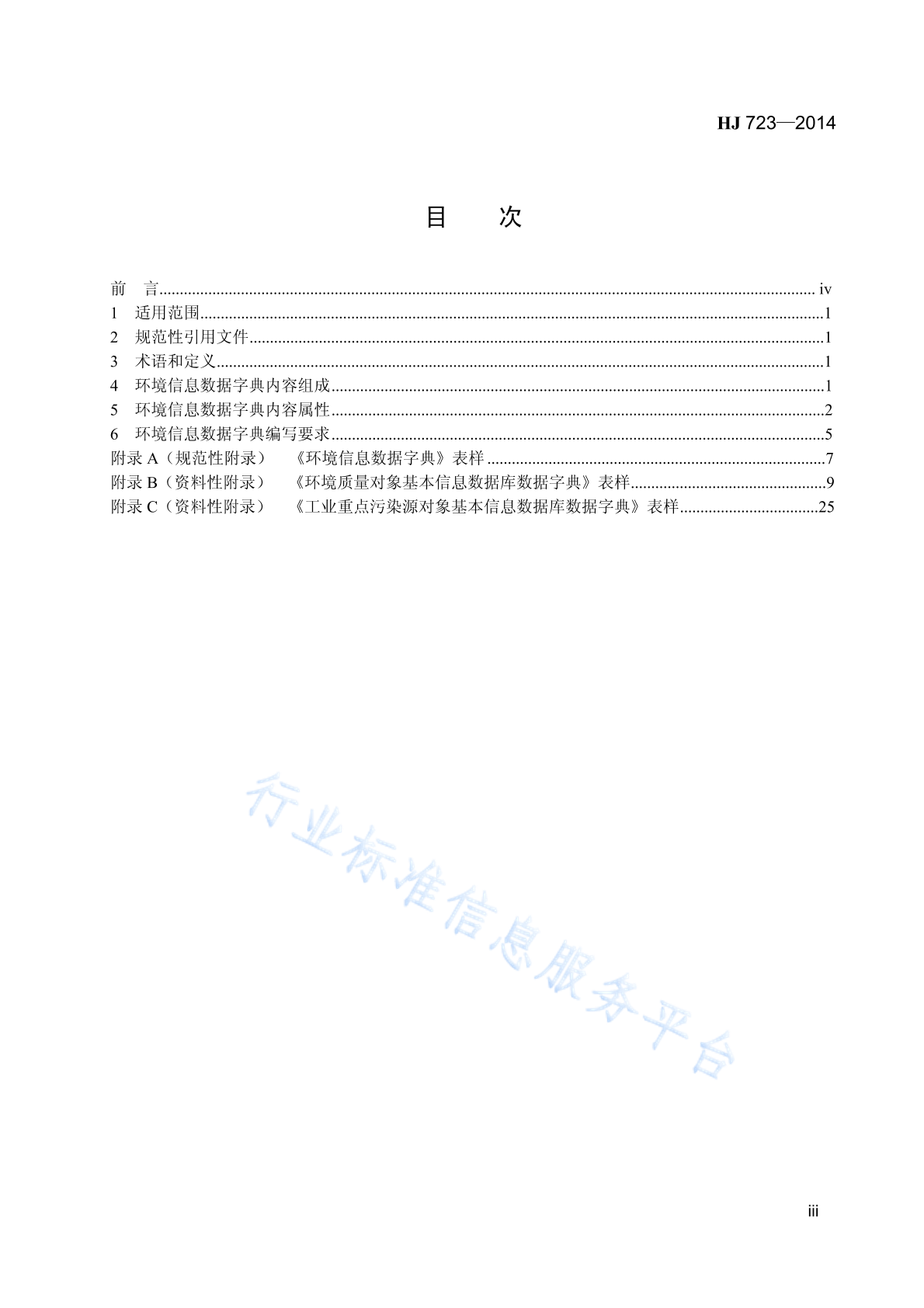 HJ 723-2014 环境信息数据字典规范