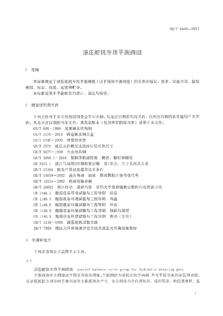 CB/T 4449-2017 液压舵机专用平衡阀组