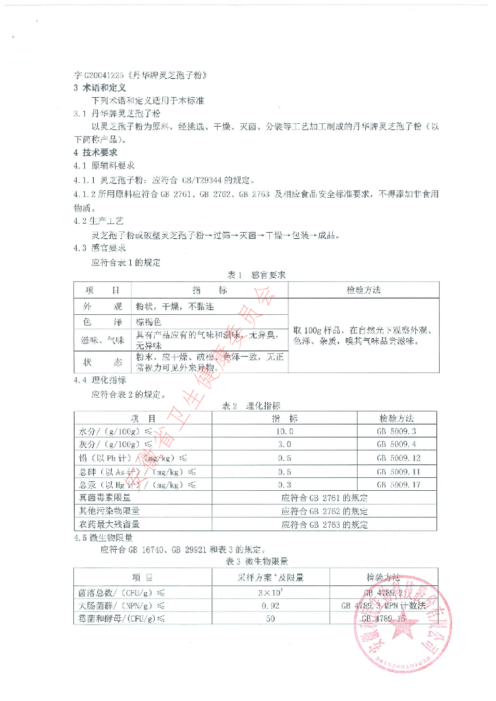 Q/LMSW 0010S-2021 丹华牌灵芝孢子粉