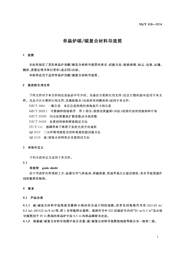 YS/T 978-2014 单晶炉碳_碳复合材料导流筒