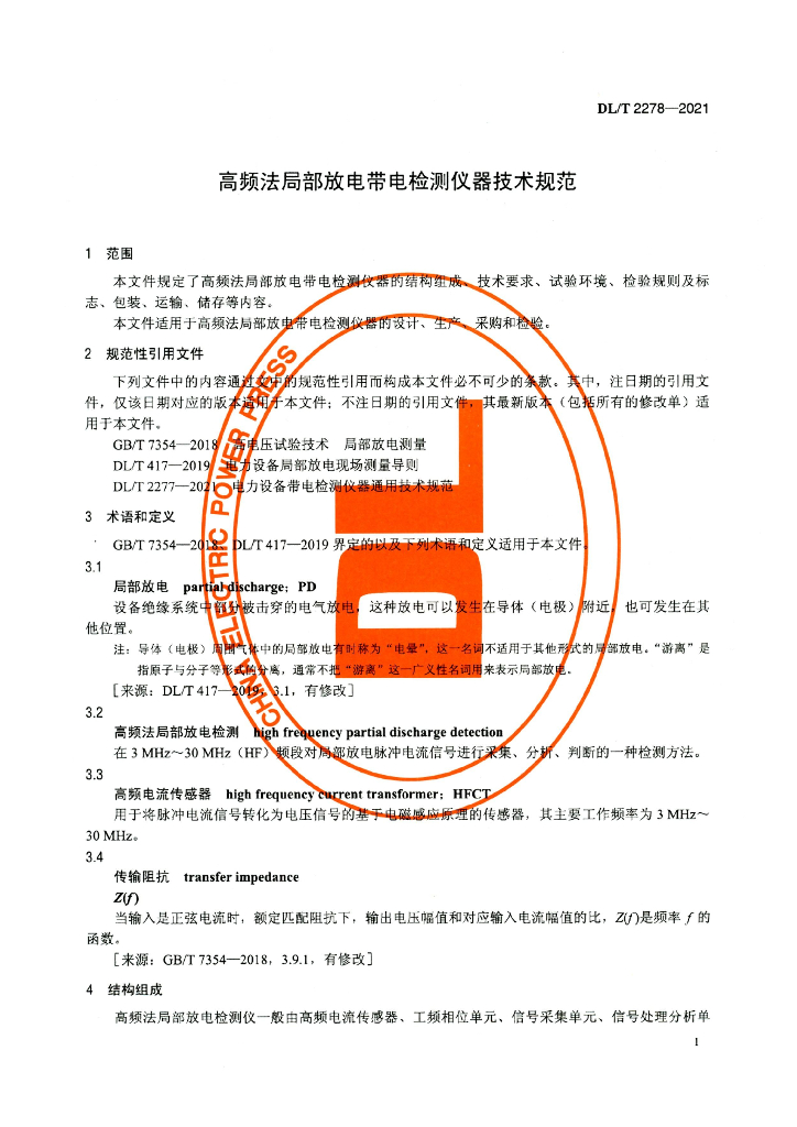 DL/T 2278-2021 高频法局部放电带电检测仪器技术规范