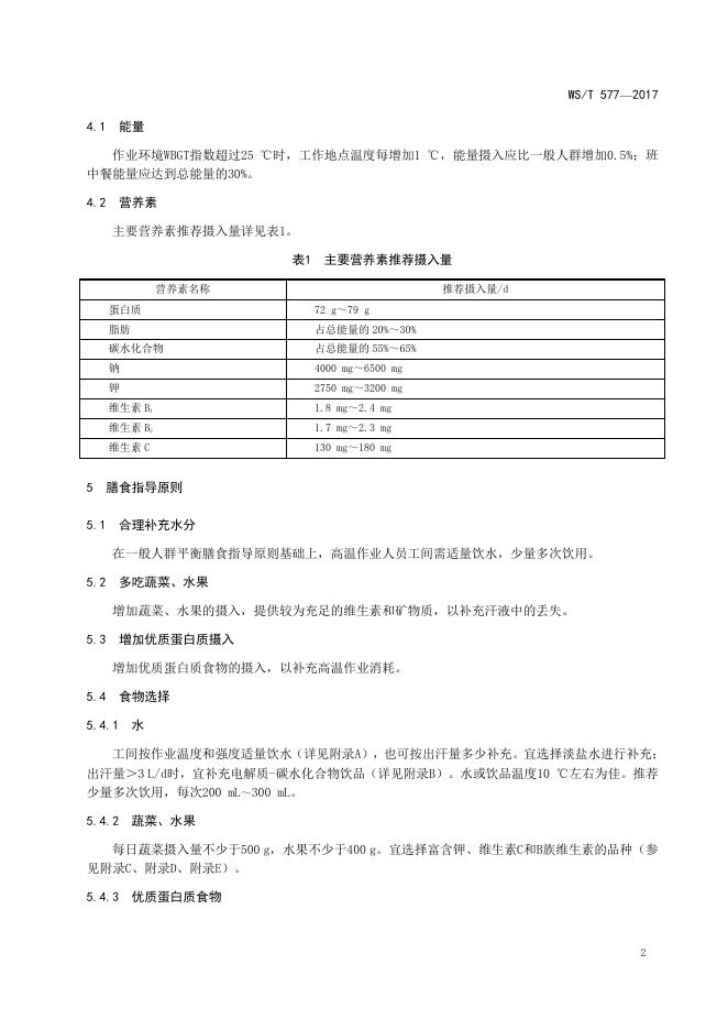 WS/T 577-2017 高温作业人员膳食指导