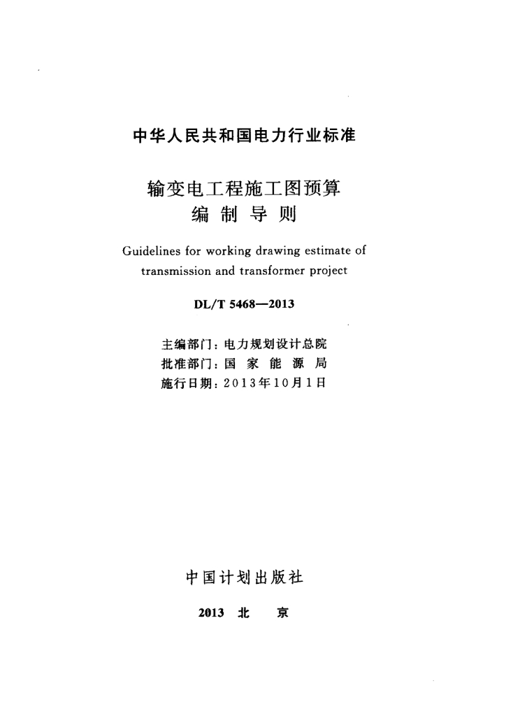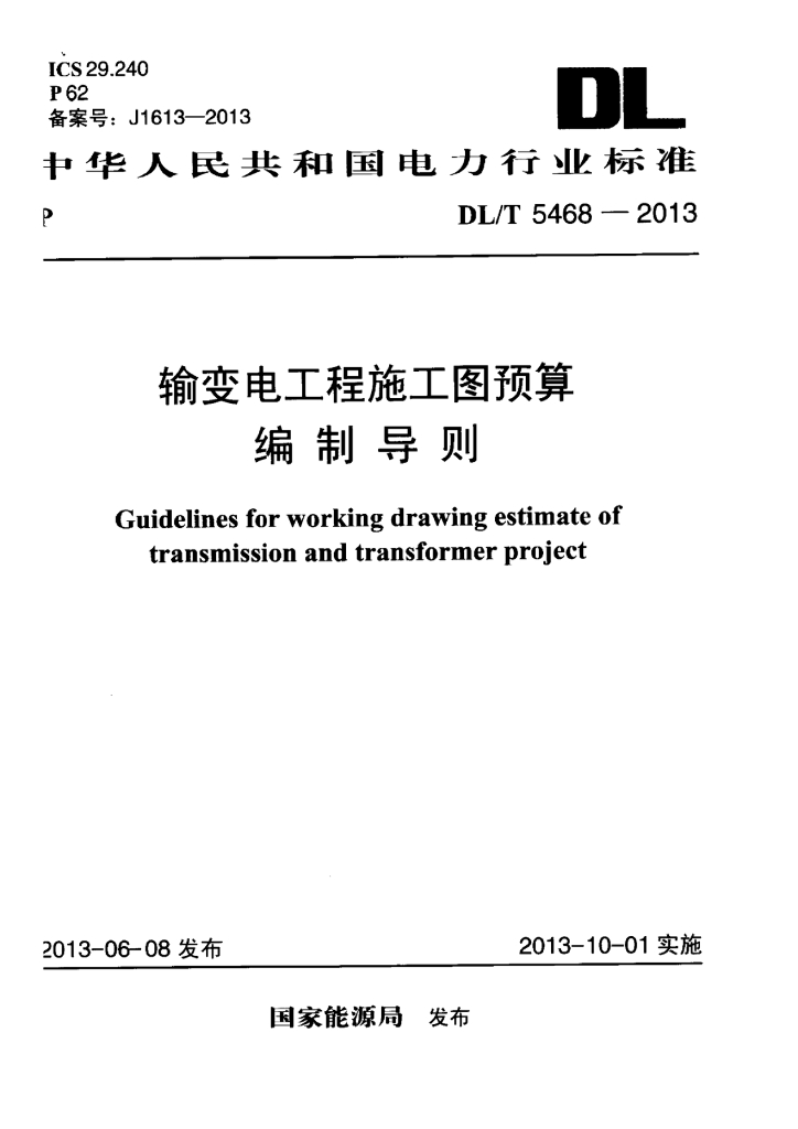 DL/T 5468-2013 输变电工程施工图预算编制导则
