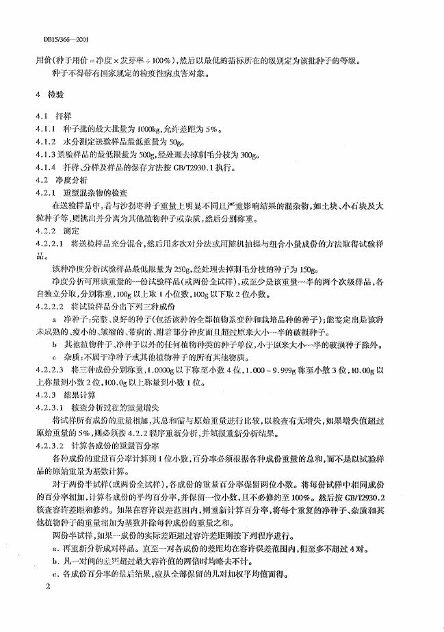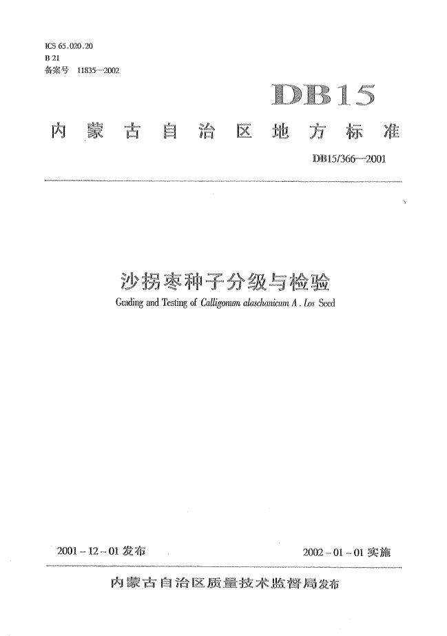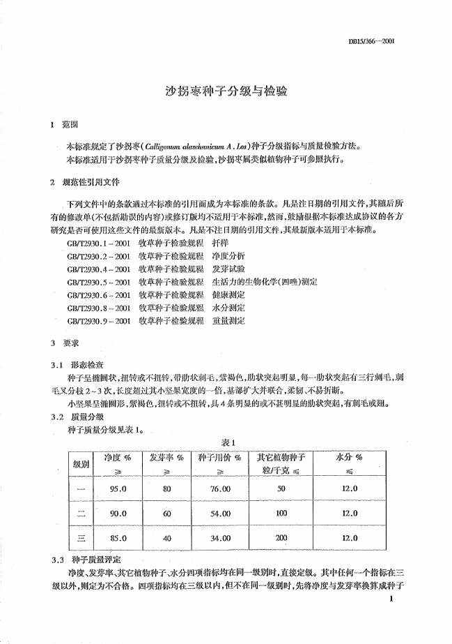DB15/ 366-2001 沙拐枣种子分级与检验