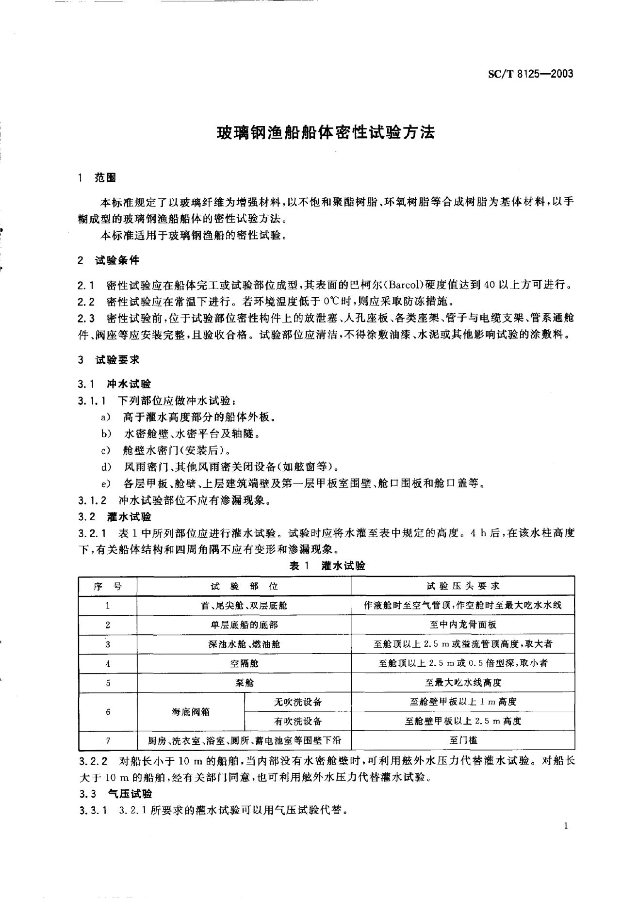 SC/T 8125-2003 玻璃钢渔船船体密性试验方法