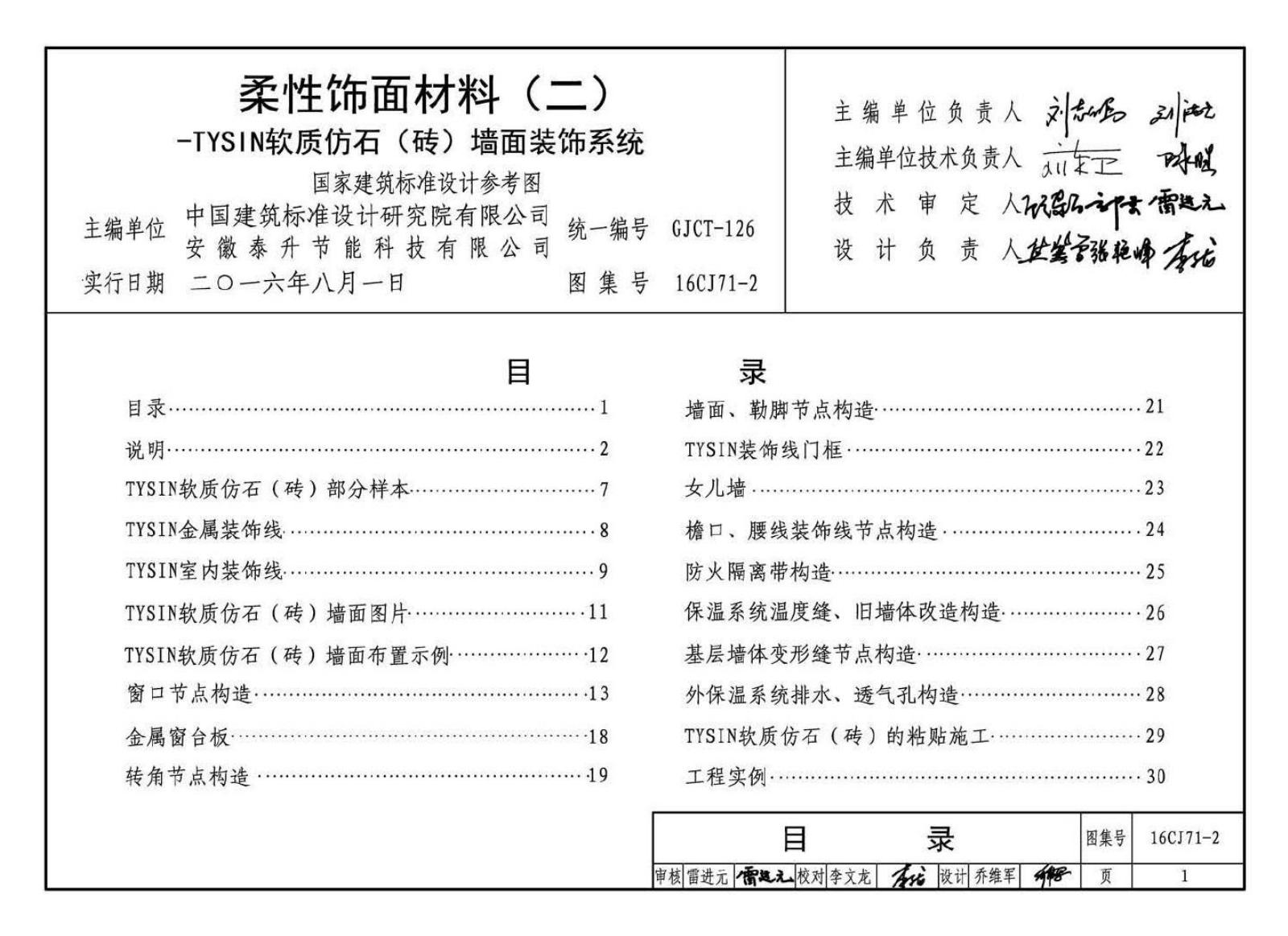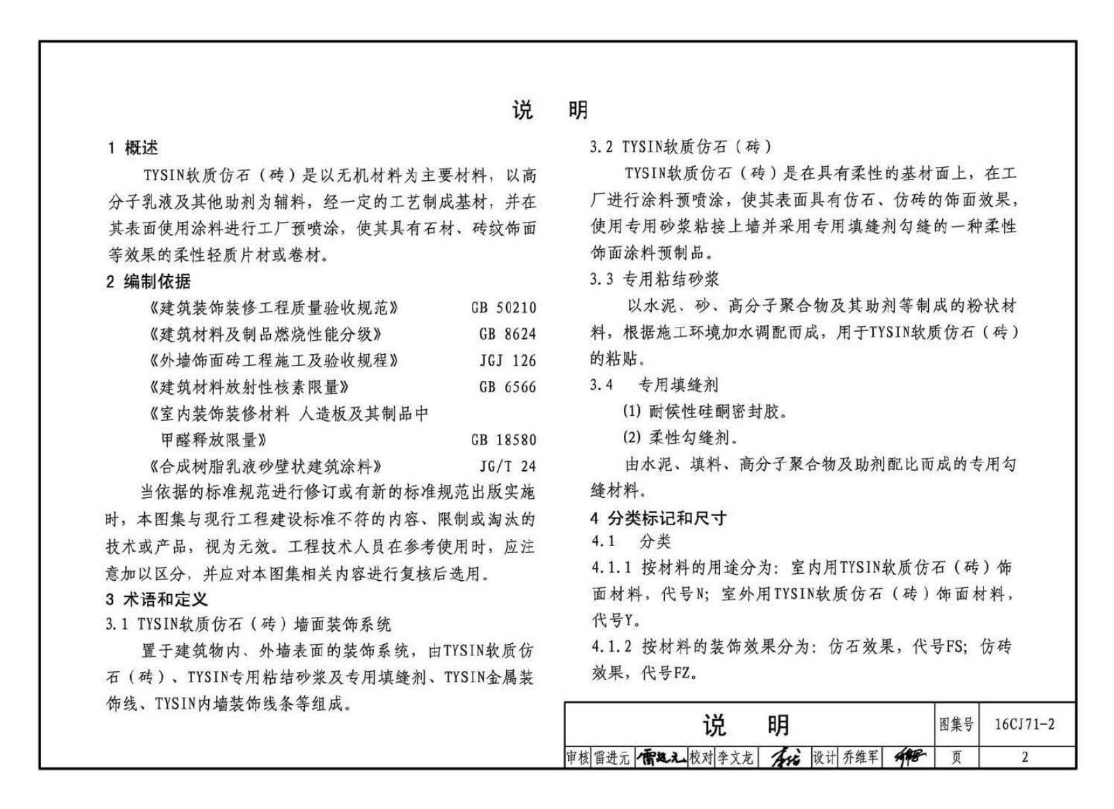 16CJ71-2 柔性饰面材料(二)TYSIN软质仿石(砖)墙面装饰系统参考图集