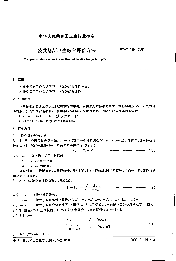 WS/T 199-2001 公共场所卫生综合评价方法