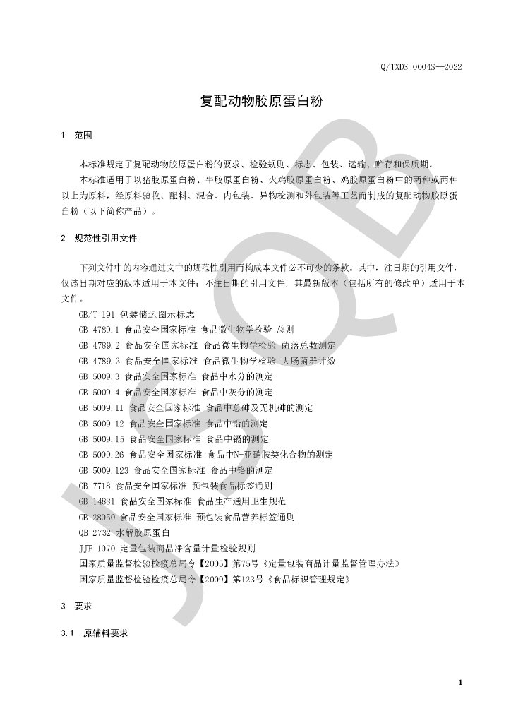 Q/TXDS 0004S-2022 复配动物胶原蛋白粉