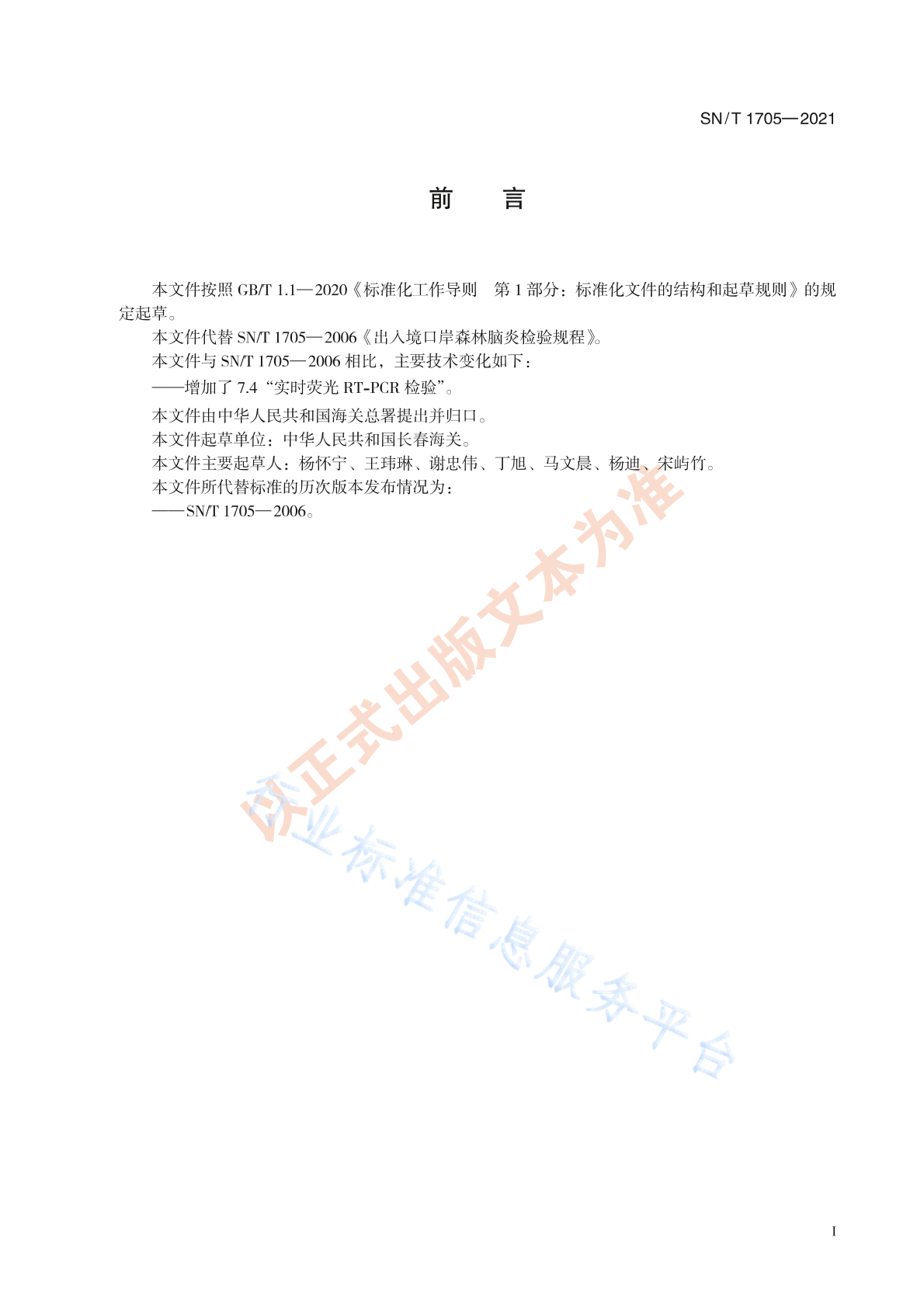 SN/T 1705-2006