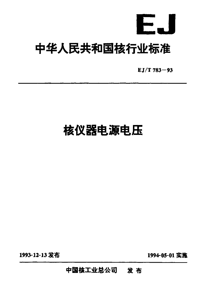 EJ/T 783-1993 核仪器电源电压