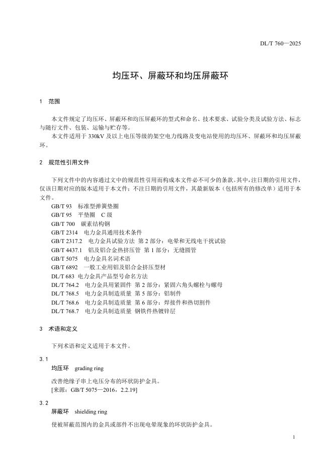 DL/T 760-2025 均压环、屏蔽环和均压屏蔽环