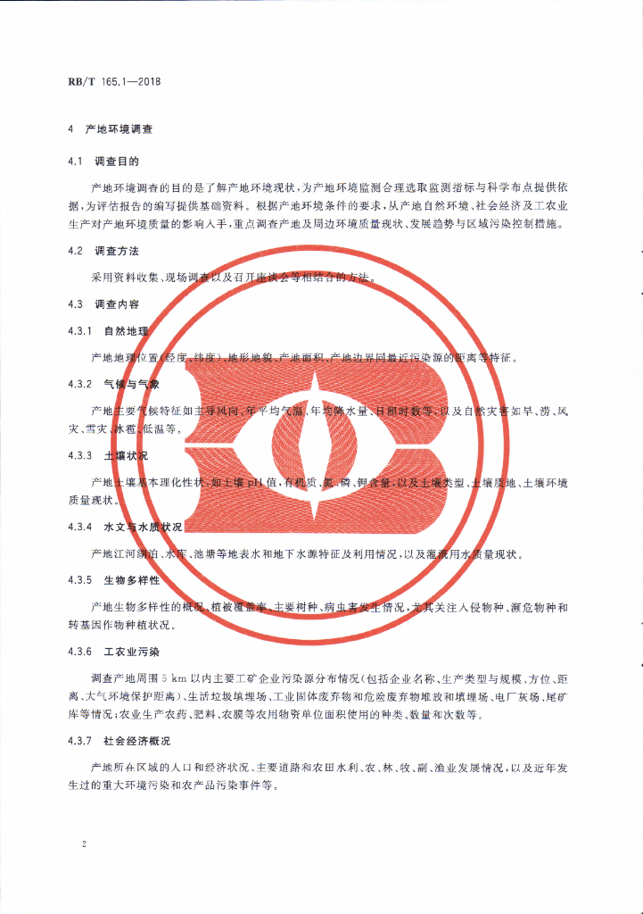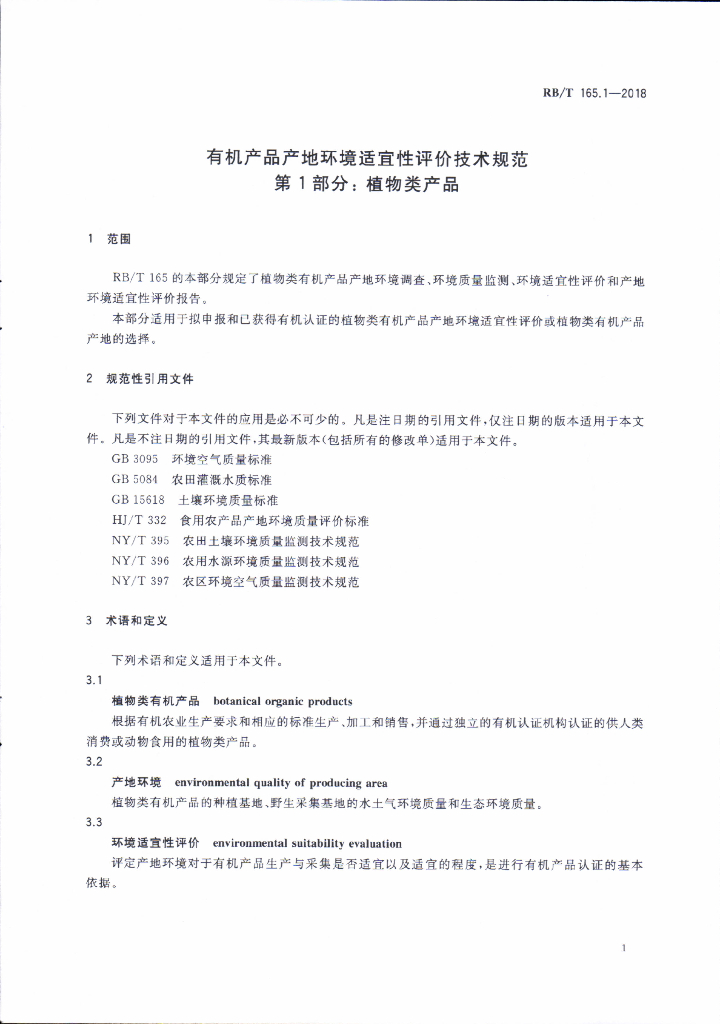 RB/T 165.1-2018 有机产品产地环境适宜性评价技术规范 第1部分:植物类产品