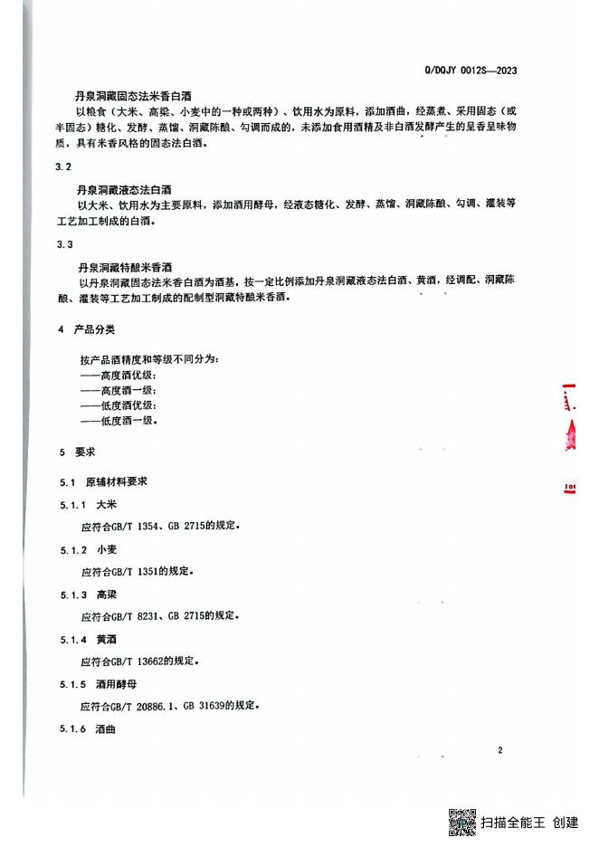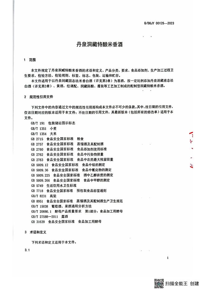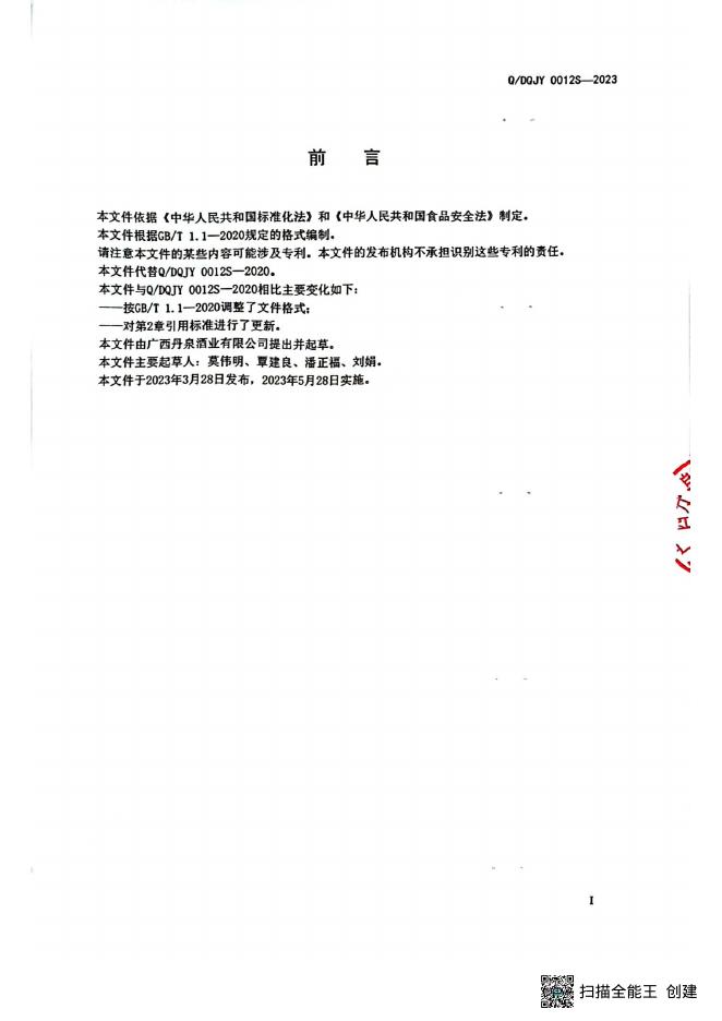 Q/DQJY 0012S-2023 丹泉洞藏特酿米香酒 广西丹泉酒业有限公司 (企业申请废止)