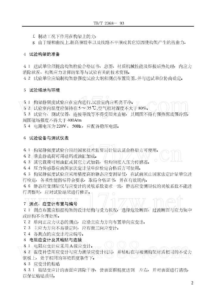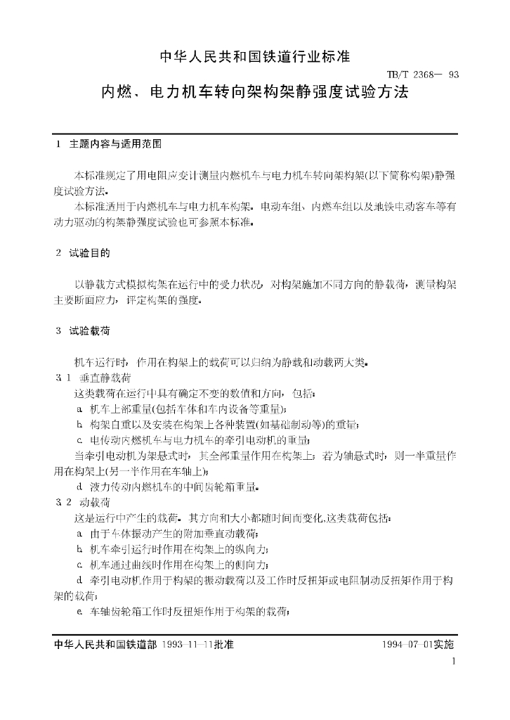 TB/T 2368-1993 内燃、电力机车转向架构架静强度试验方法