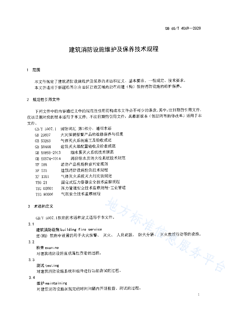 DB65/T 4069-2020 建筑消防设施维护及保养技术规范