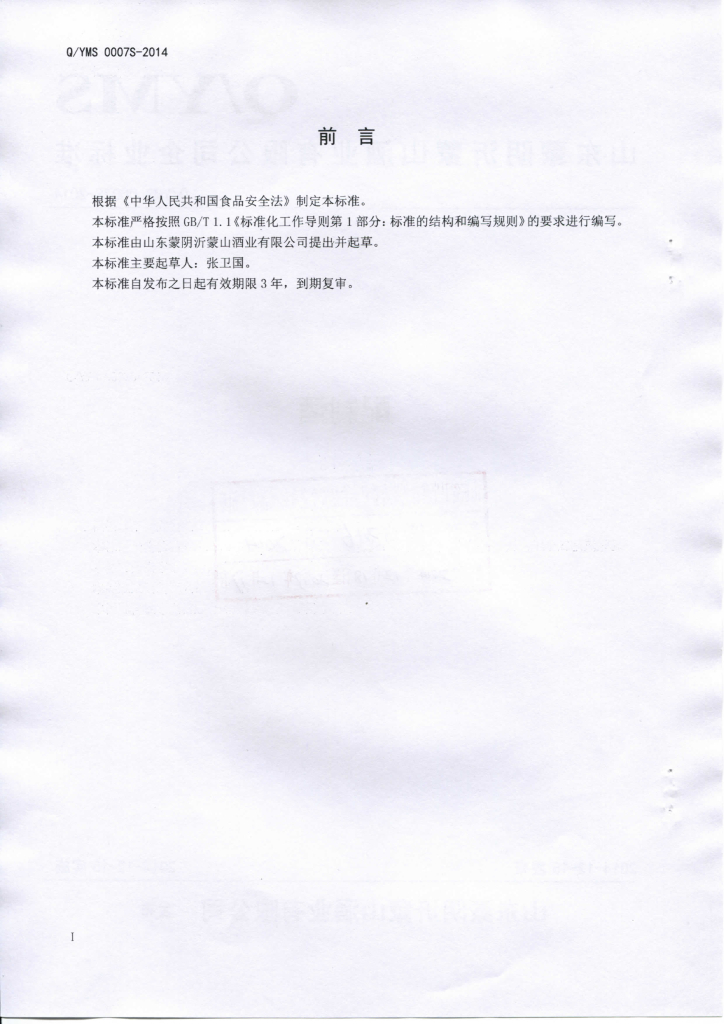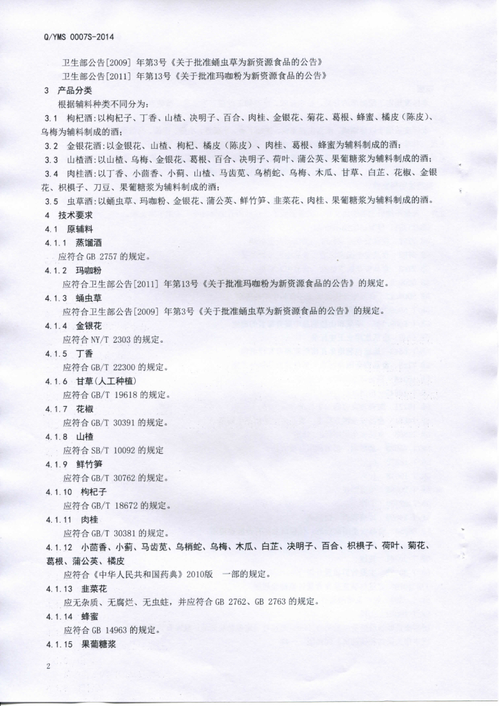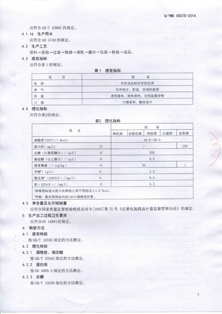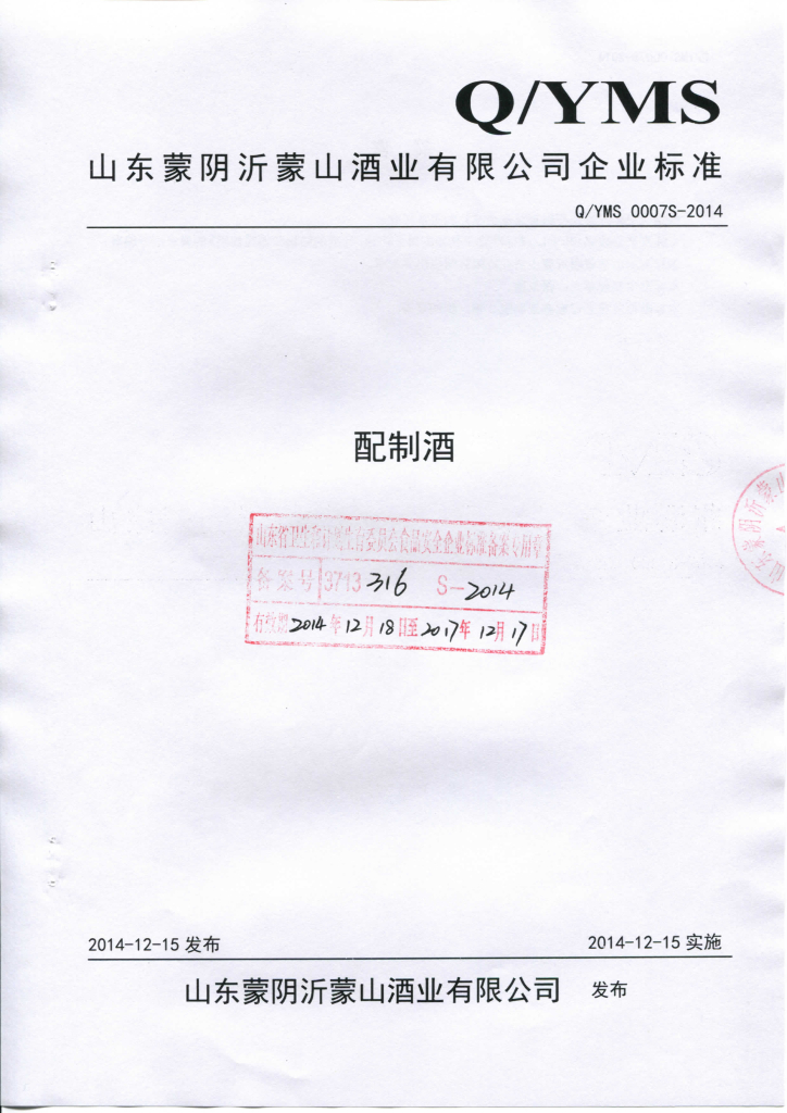 Q/YMS 0007S-2014 山东蒙阴沂蒙山酒业有限公司 配制酒