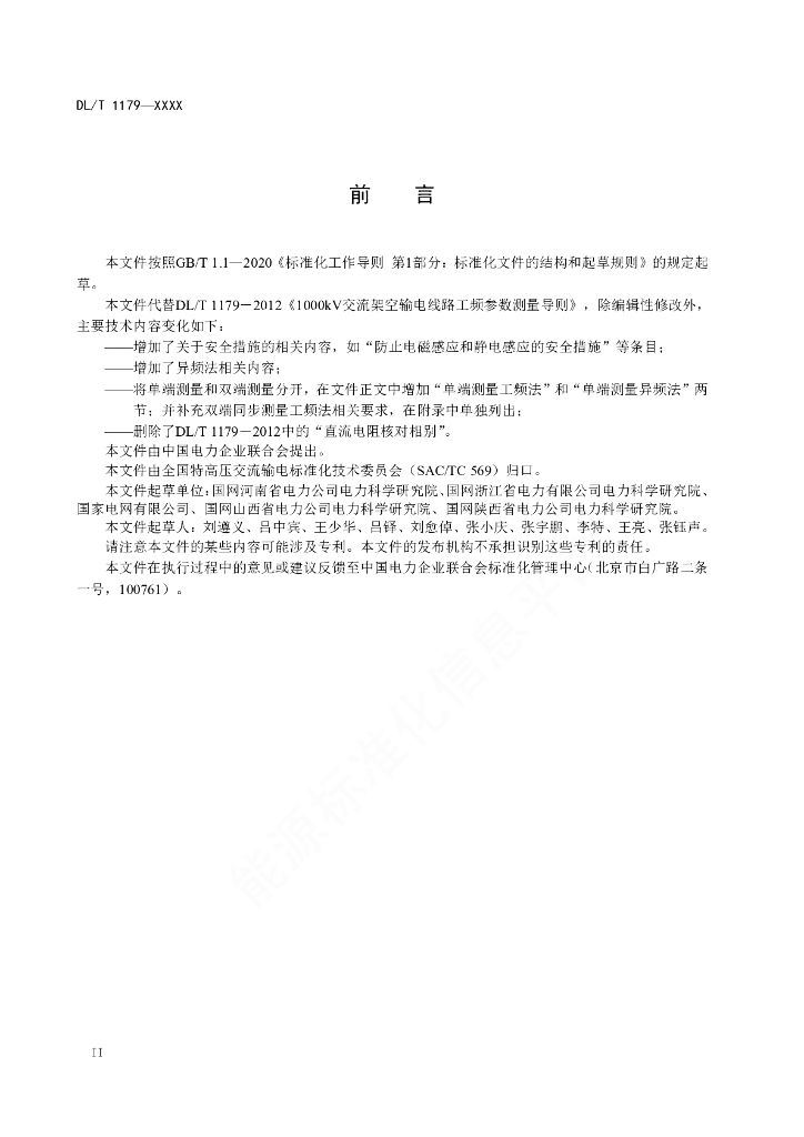 DL/T 1179-2021 1000kV交流架空输电线路工频参数测量导则