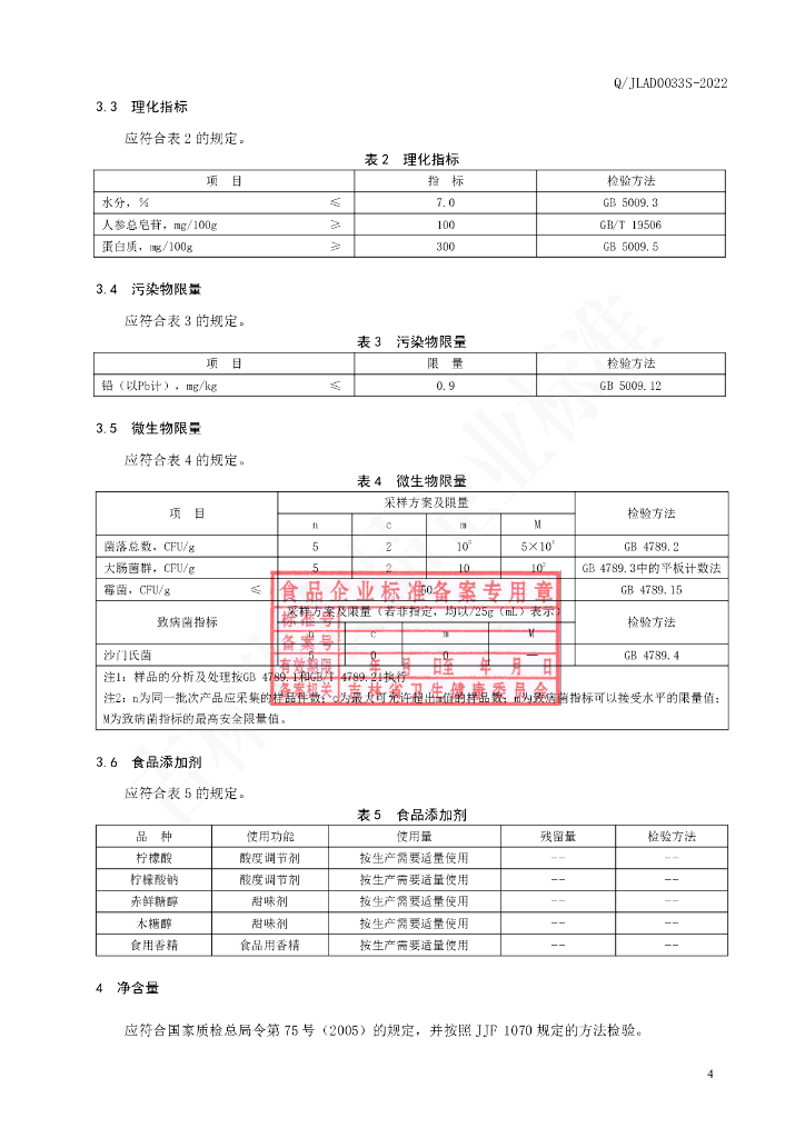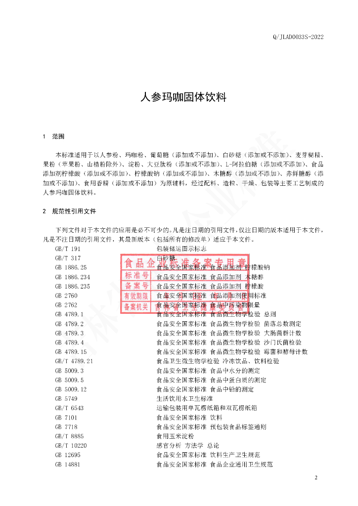 Q/JLAD 0033S-2022 人参玛咖固体饮料