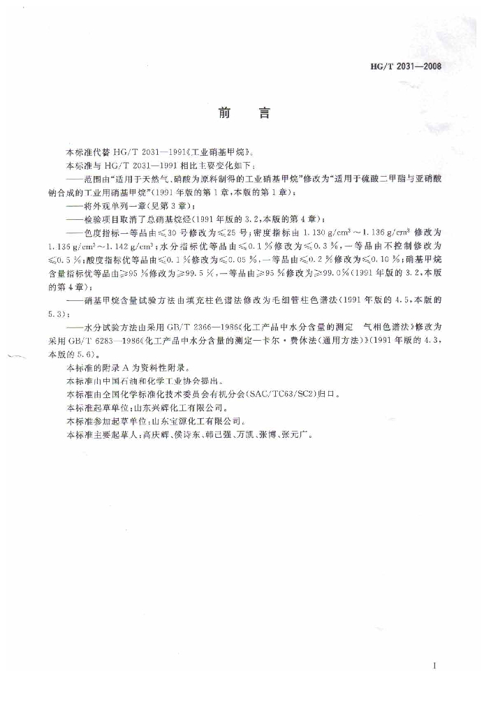 HG/T 2031-2008 工业用硝基甲烷