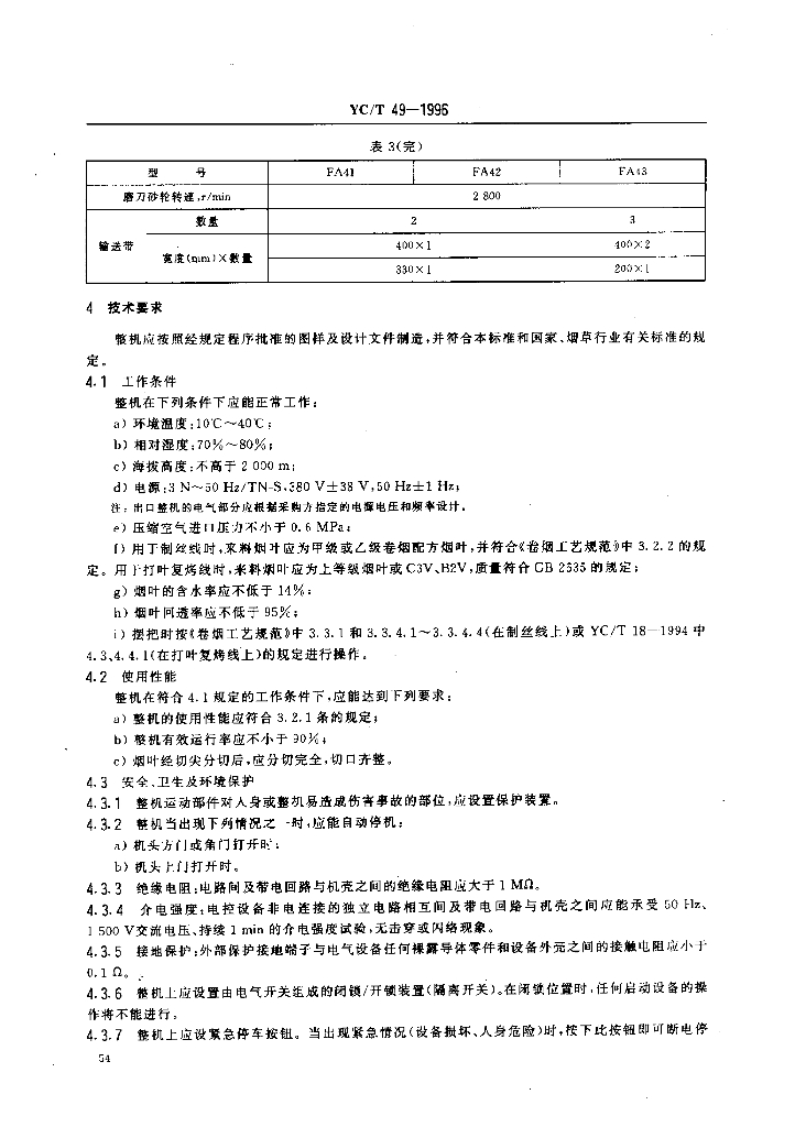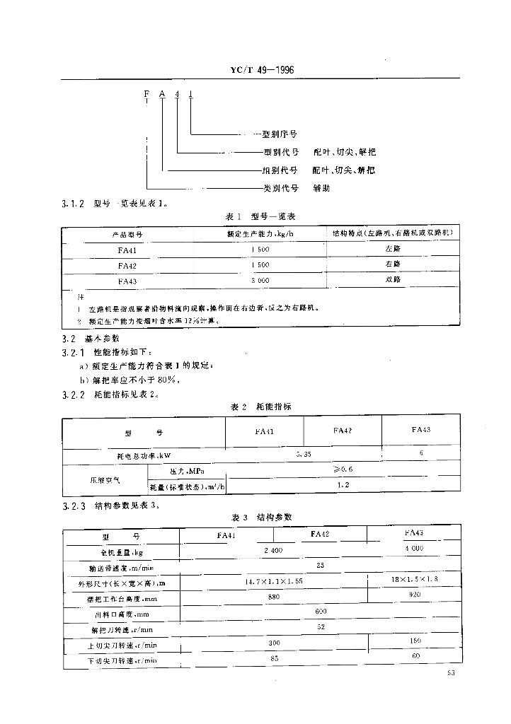 YC/T 49-1996 烟草机械FA41~43型配叶切尖解把机