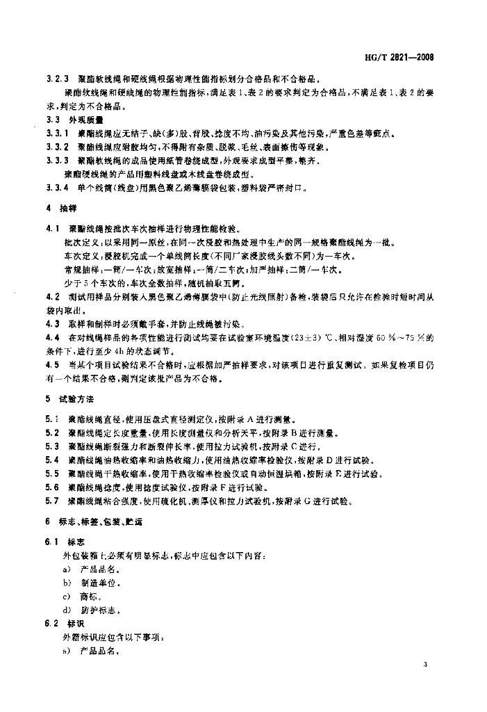 HG/T 2821-2008 V 带和多楔带用浸胶聚酯线绳