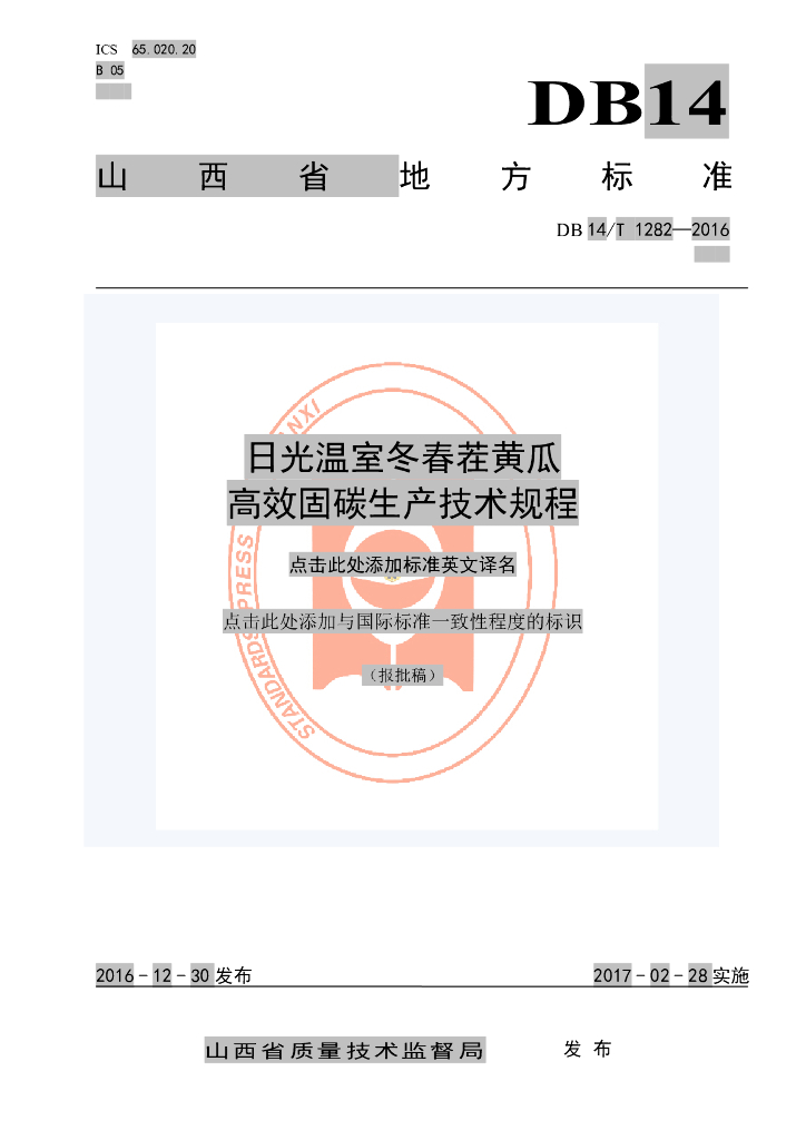 DB14/T 1282-2016 日光温室冬春茬黄瓜高效固碳生产技术规程