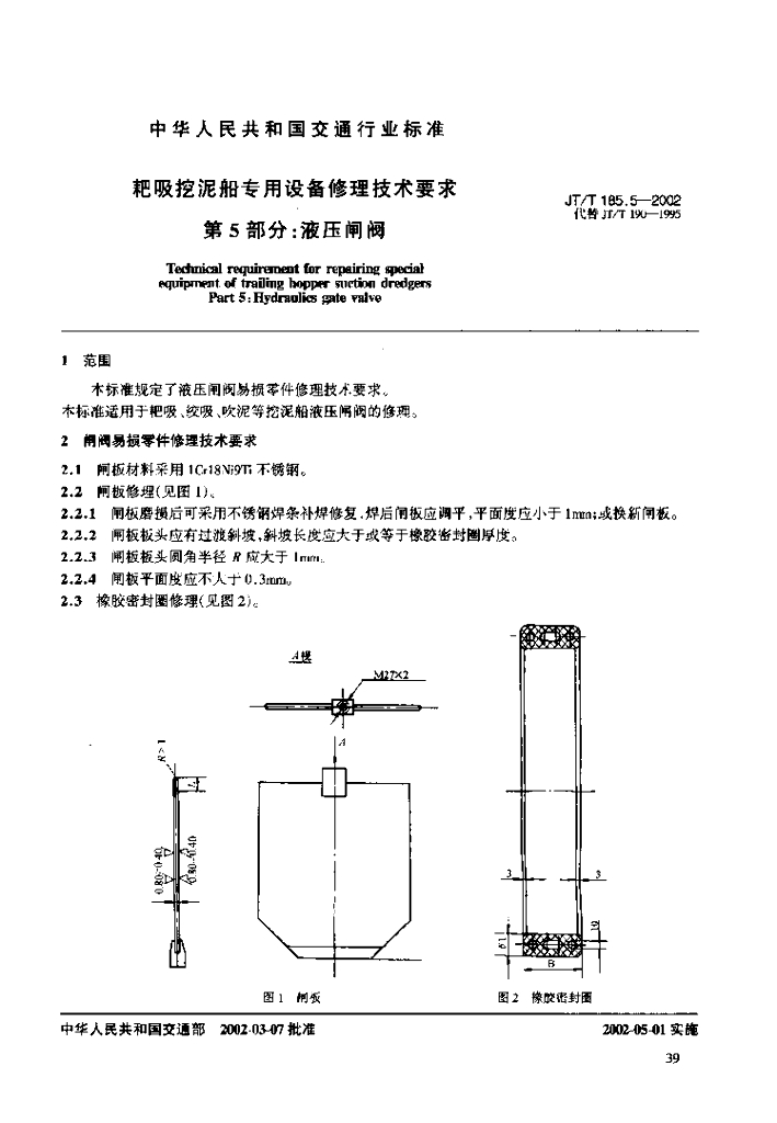 JT/T 185.5-2002 耙吸挖泥船专用设备修理技术要求 第5部分:液压闸阀