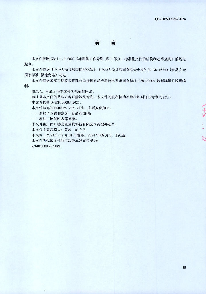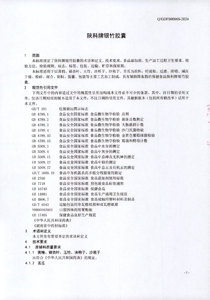 Q/GDFS 0006S-2024 陕科牌银竹胶囊
