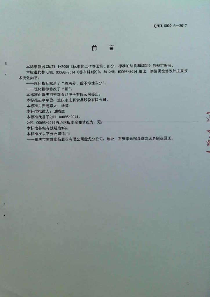 Q/HL 0009S-2017 香辛料(粉)