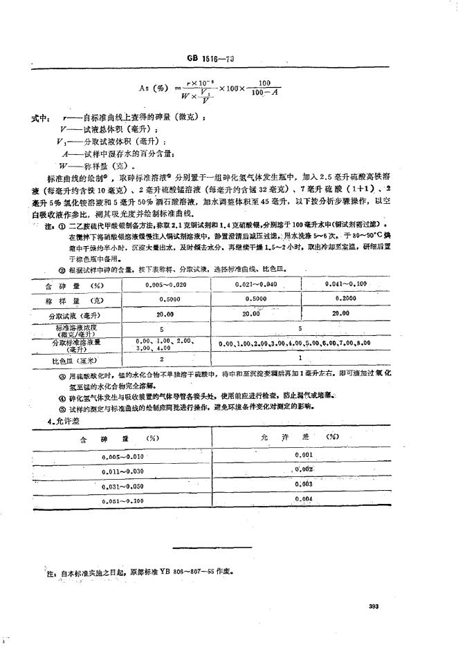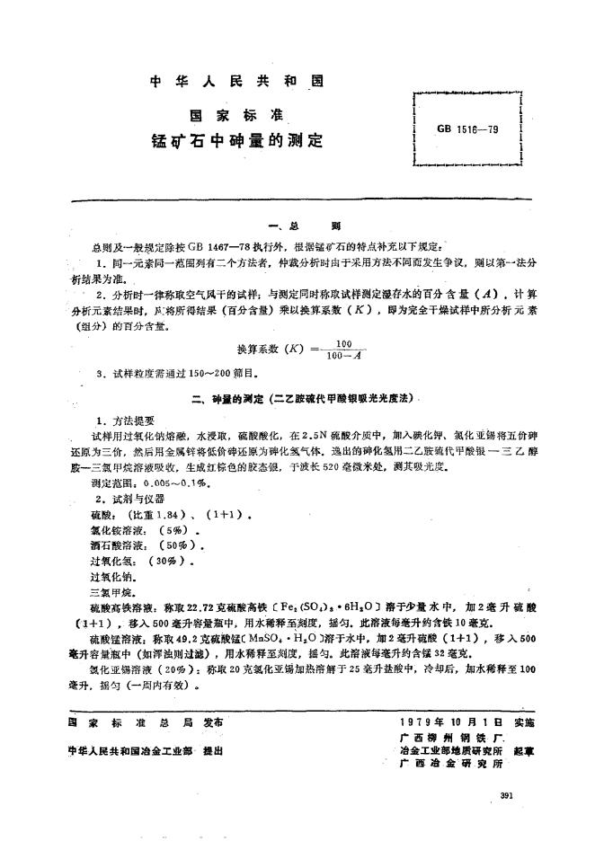 GB/T 1516-1979 锰矿石中砷量的测定 二乙胺硫代甲酸银吸光光度法