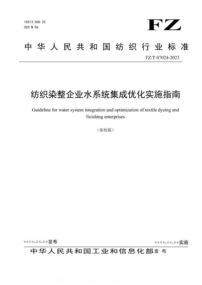 FZ/T 07024-2023 纺织染整企业水系统集成优化实施指南