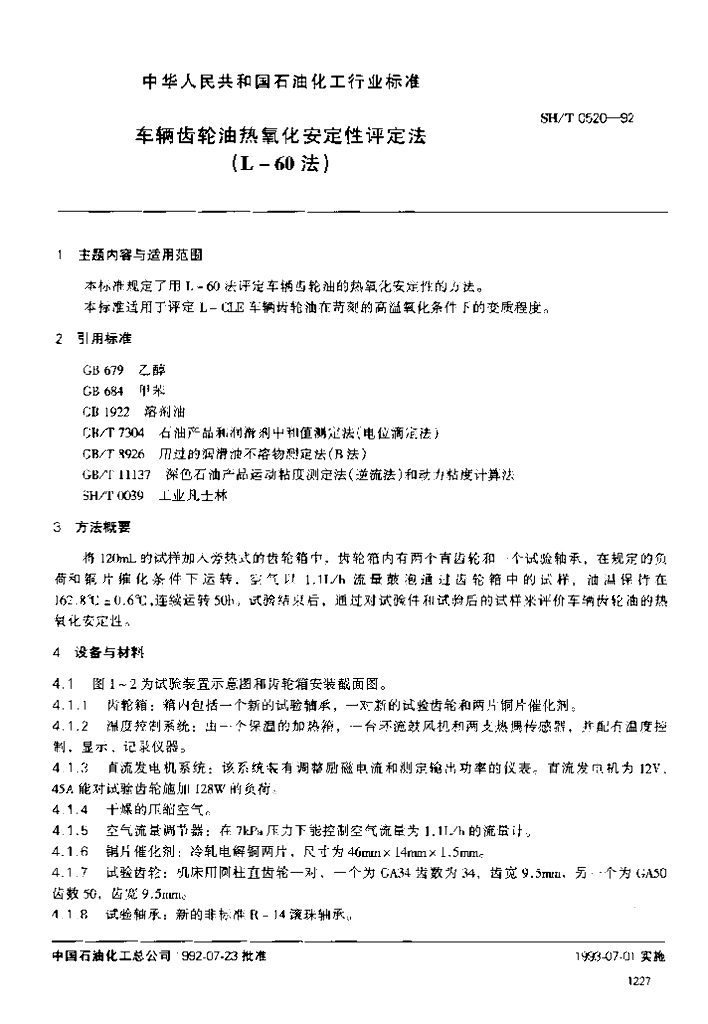 SH/T 0520-1992 车辆齿轮油热氧化安定性评定法(L-60法)