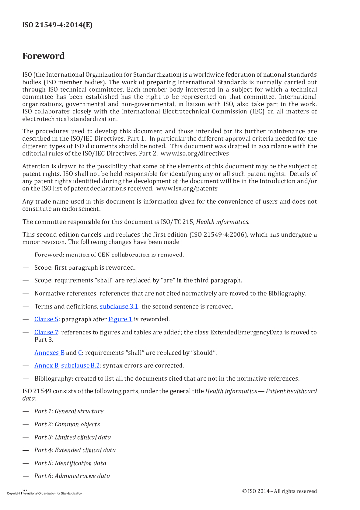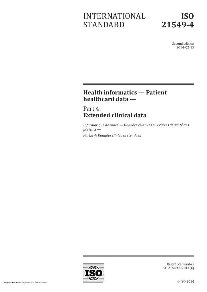 ISO 21549-4-2014 保健信息学 患者健康卡数据 第4部分:扩展临床数据