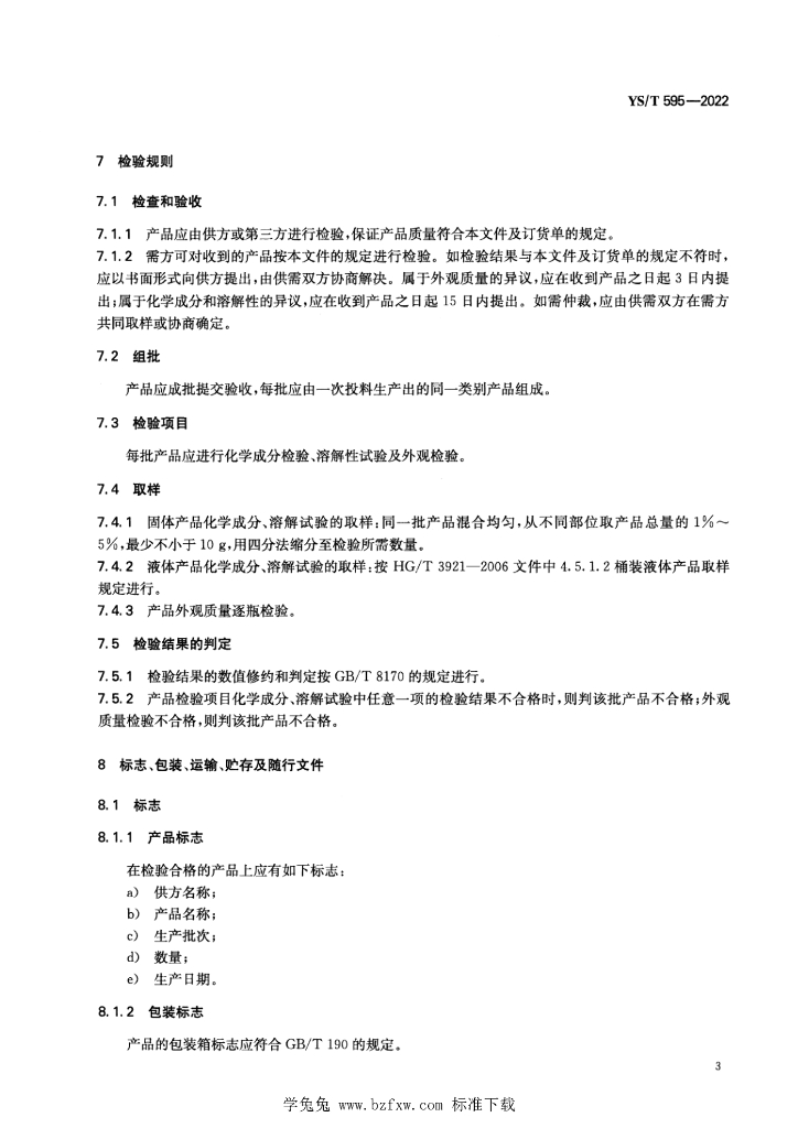- 代替标准:YS/T 595-2006