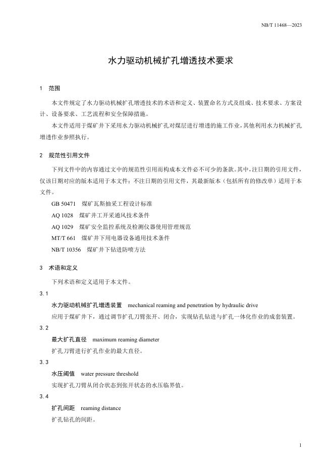 NB/T 11468-2023 水力驱动机械扩孔增透技术要求