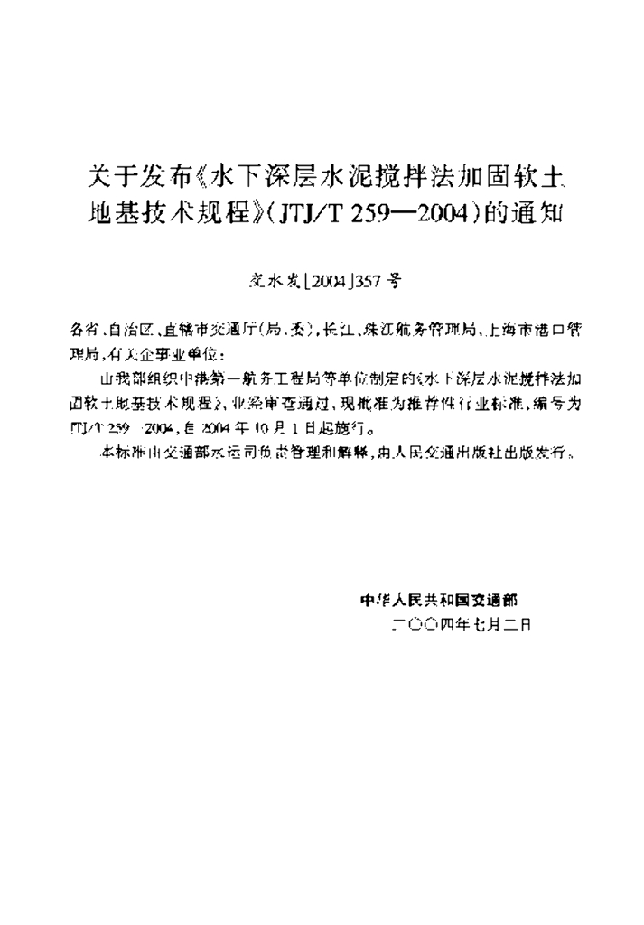 JTJ/T 259-2004 水下深层水泥搅拌法加固软土地基技术规程