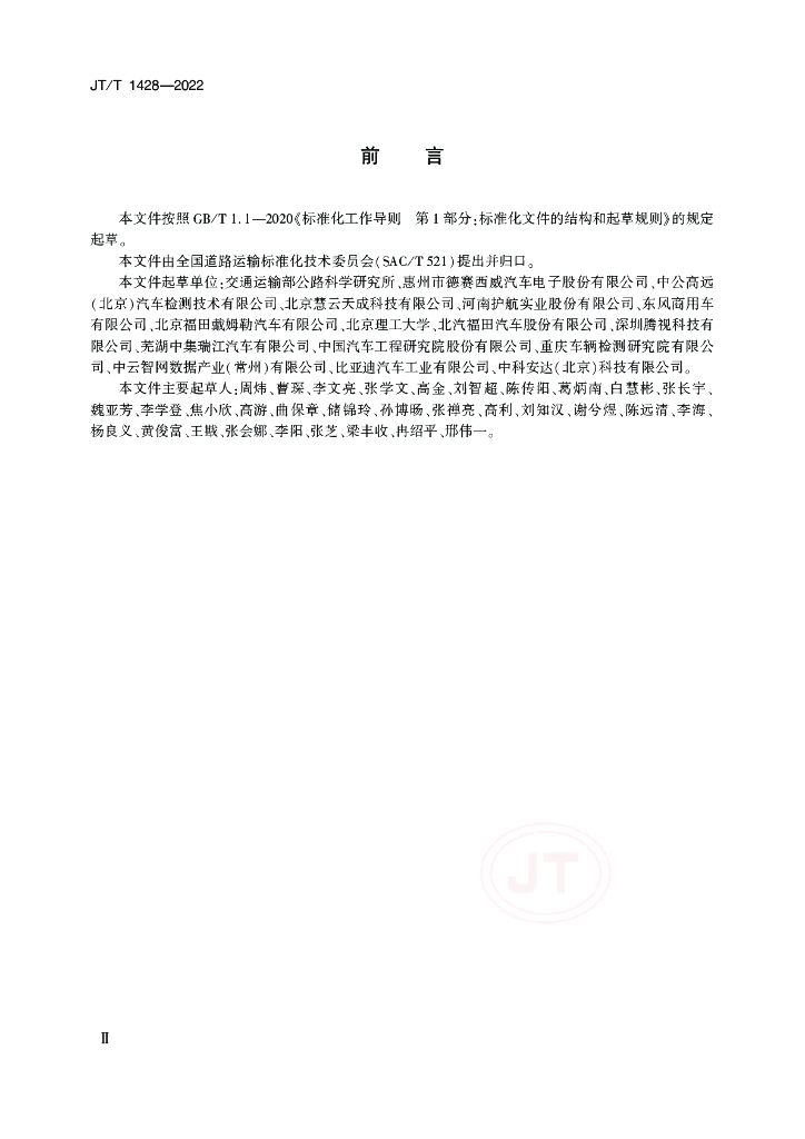 交通运输部公路科学研究所、惠州市德赛西威汽车电子股份有限公司、中公高远(北京)汽车检测技术有限公司、北京慧云天成科技有限公司、河南护航实业股份有限公司、东风商用车有限公司、北京福田戴姆勒汽车有限公司、北京理工大学、北汽福田汽车股份有限公司、深圳腾视科技有限公司、芜湖中集瑞江汽车有限公司、中国汽车工程研究院股份有限公司、重庆车辆检测研究院有限公司、中云智网数据产业(常州)有限公司、比亚迪汽车工业有限公司、中科安达(北京)科技有限公司