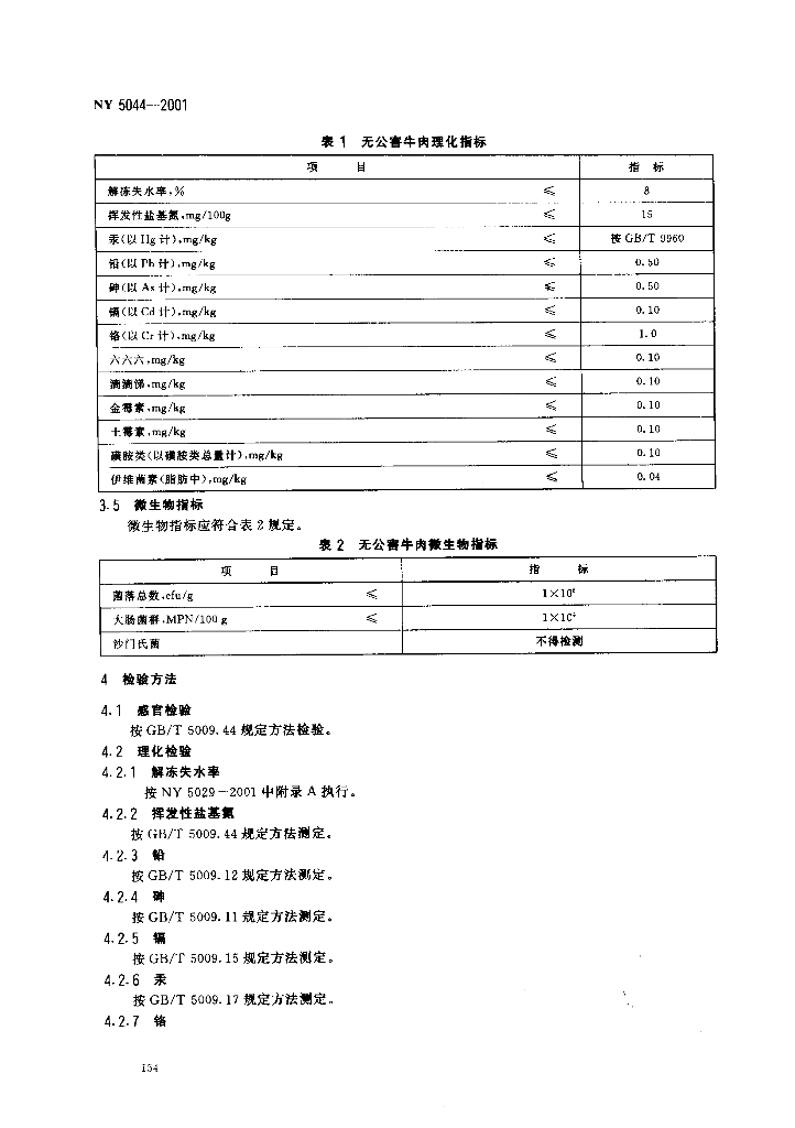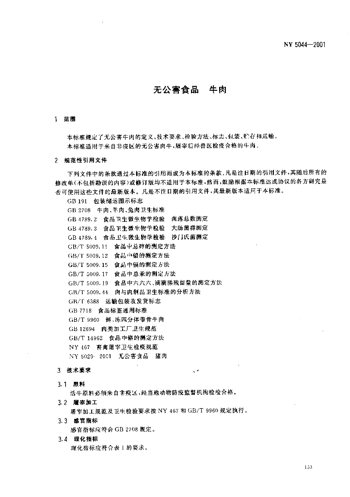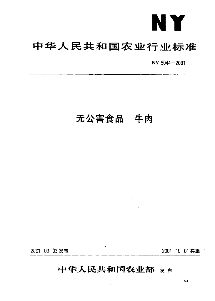 NY 5044-2001 无公害食品 牛肉