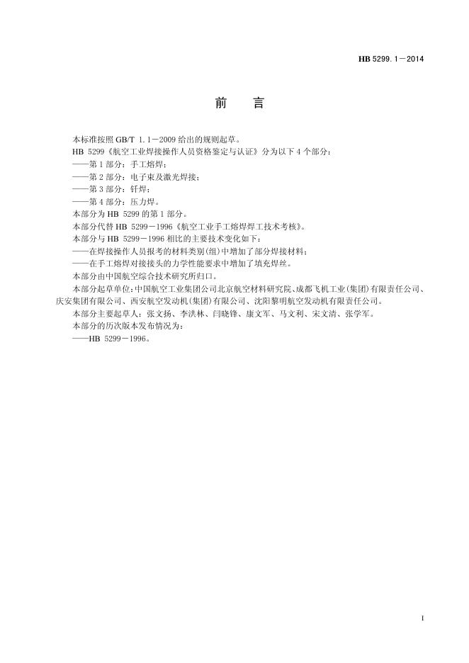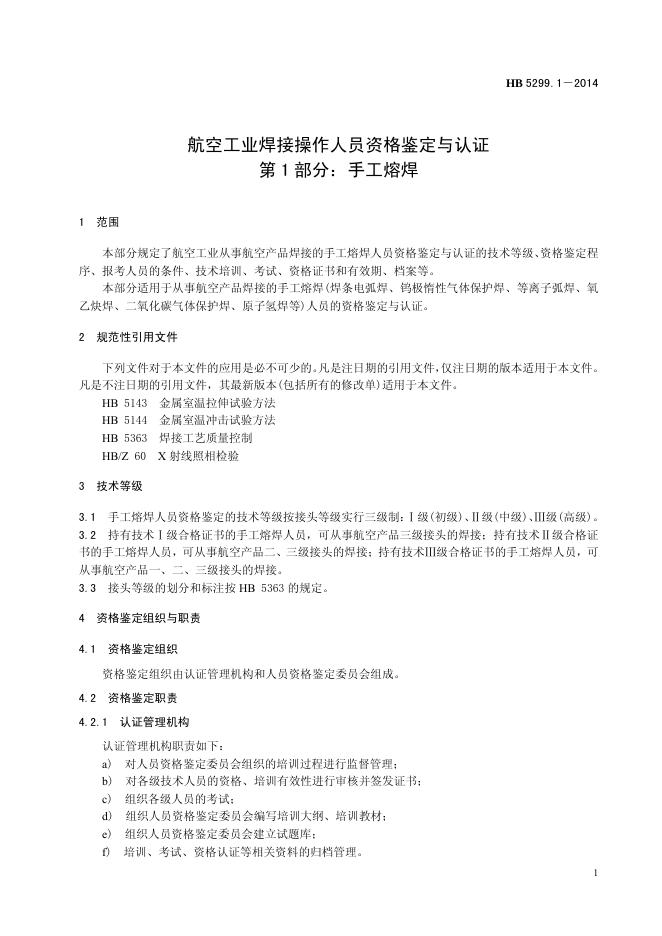 HB 5299.1-2014(2017) 航空工业焊接操作人员资格鉴定与认证 第1部分:手工熔焊